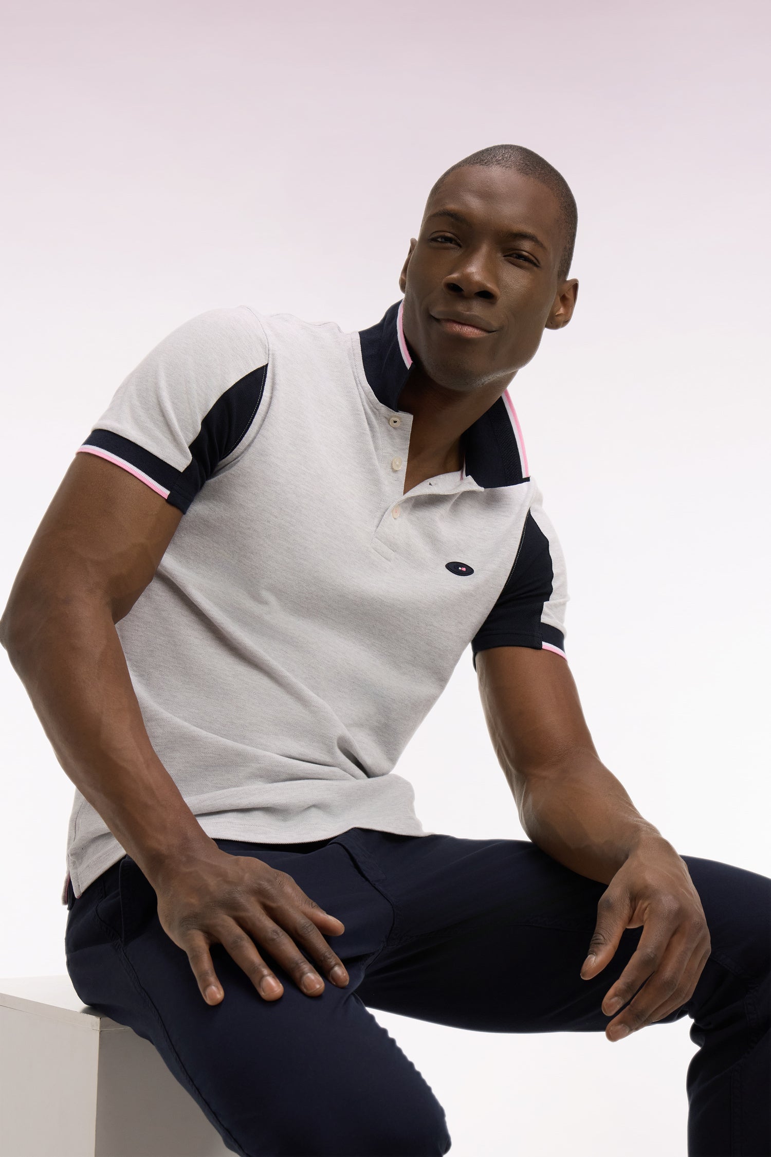 • Col polo marine à bordures contrastées
