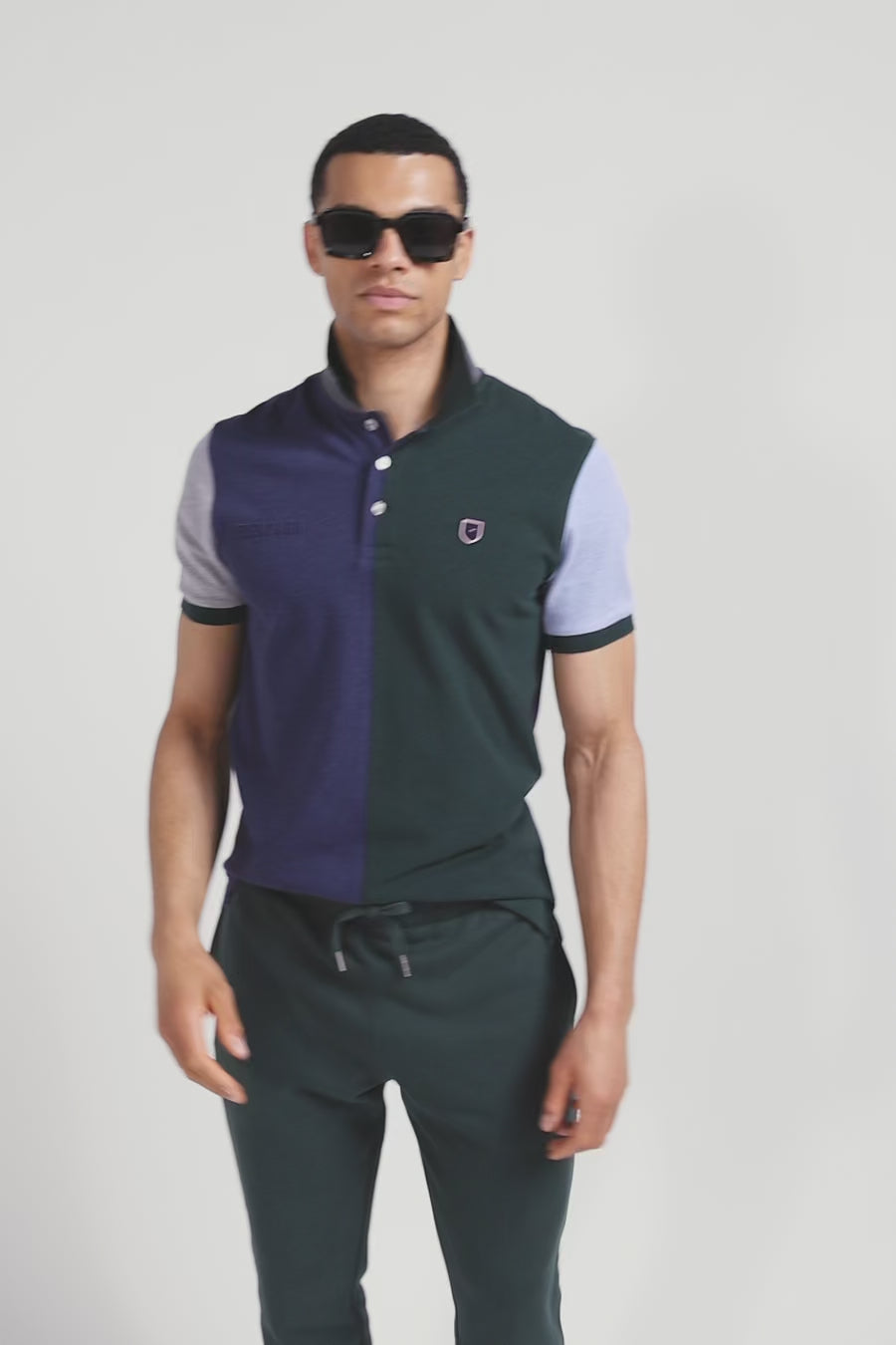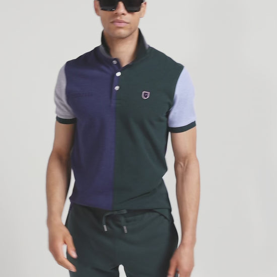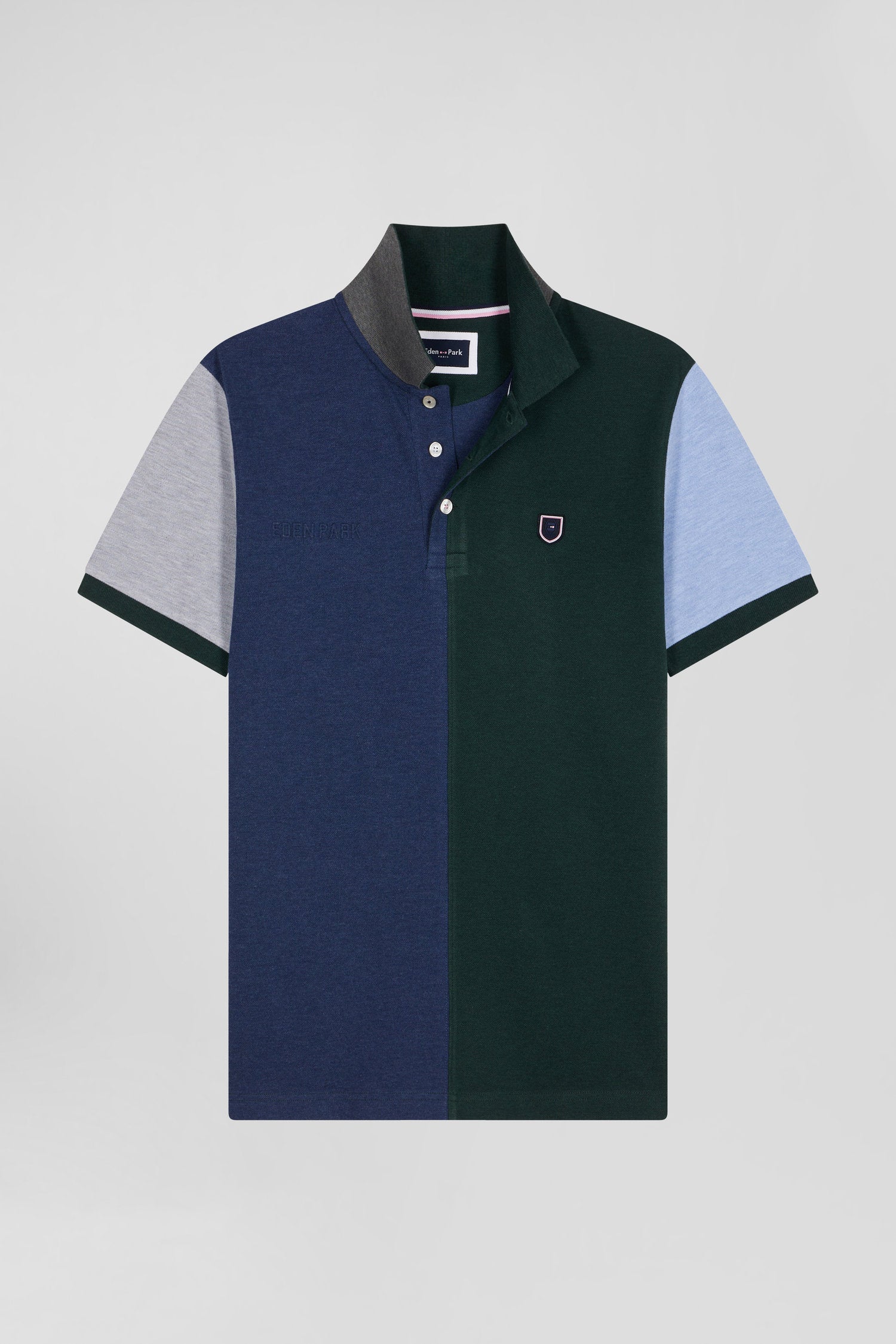 Regular green colorblock short-sleeved cotton piqué polo shirt