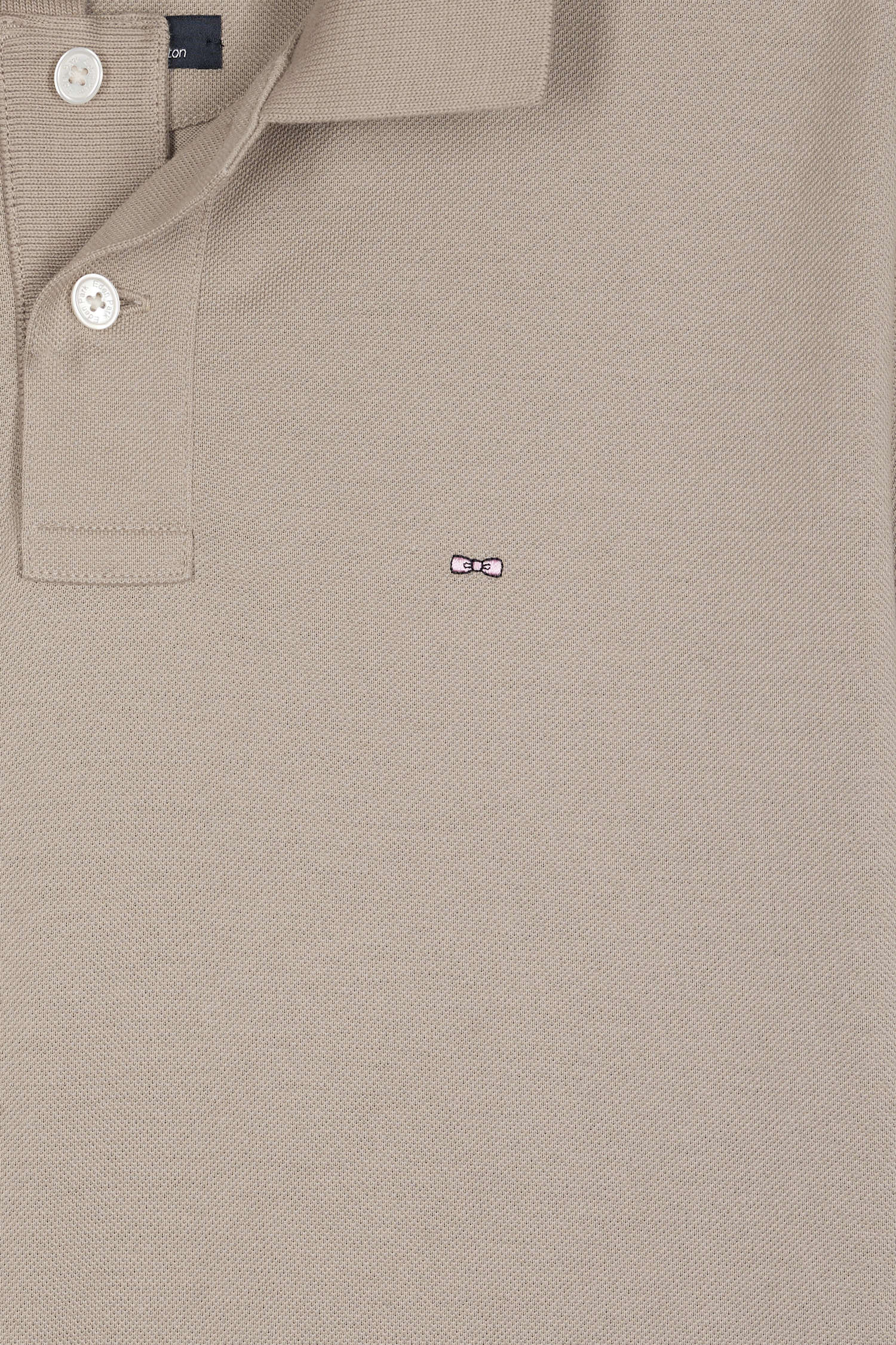 Short-sleeved polo shirt in beige Pima cotton, straight cut