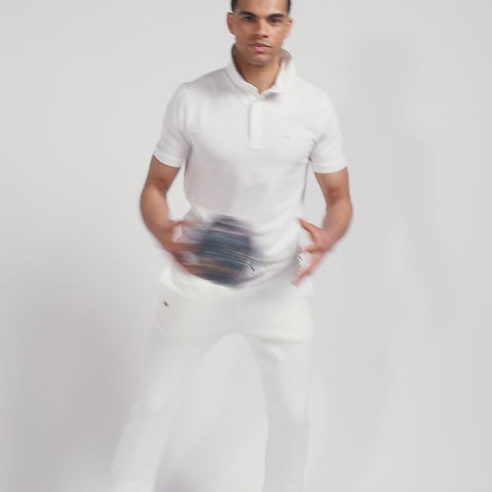 This men's short-sleeved polo shirt in cotton piqué combines comfort and refined style. The slim fit enhances the silhouette, while the oval rugby buttons and pink bowtie embroidery add an emblematic touch. Available in a range of trendy shades.