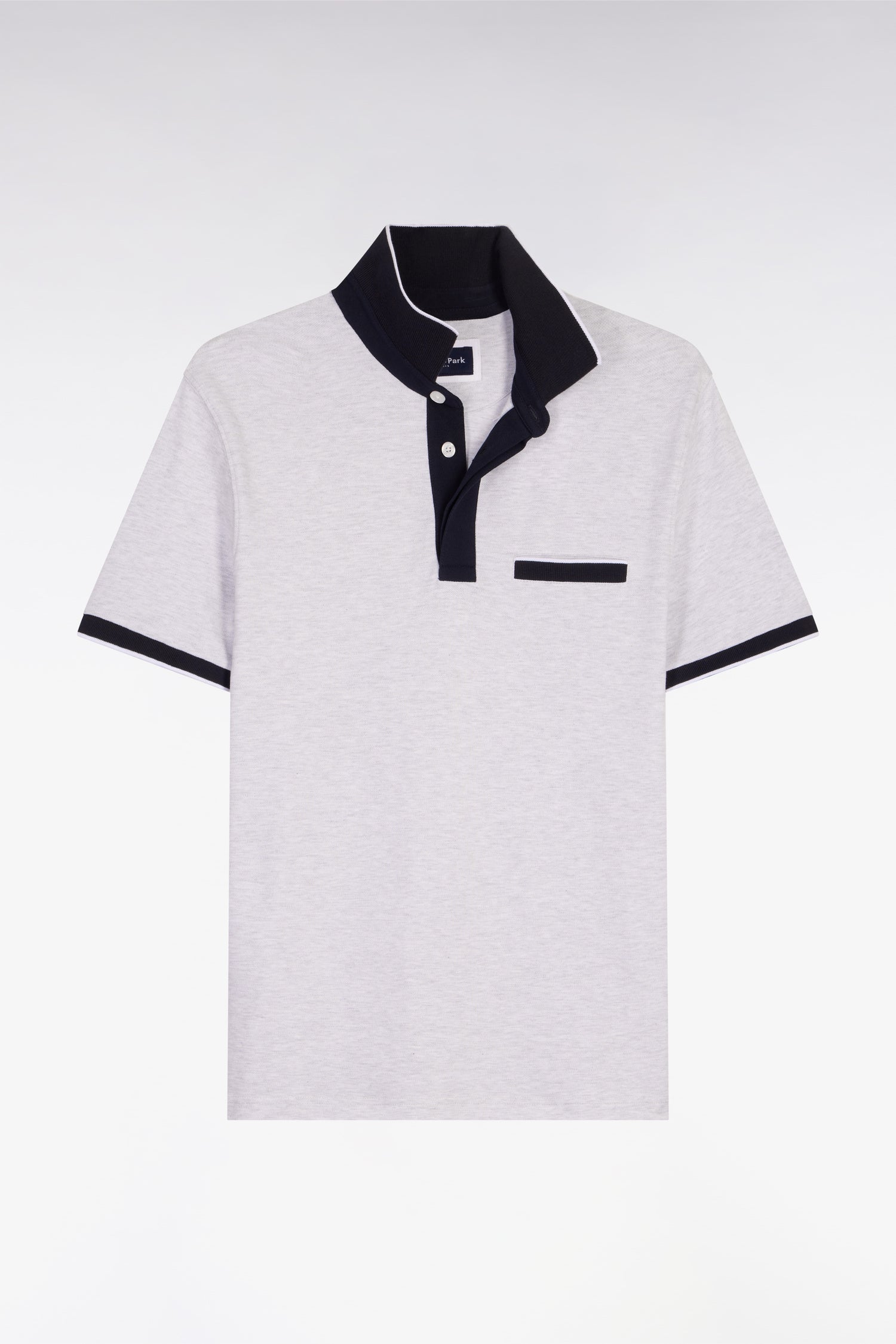 Polo manches courtes en piqué coton stretch gris clair coupe slim