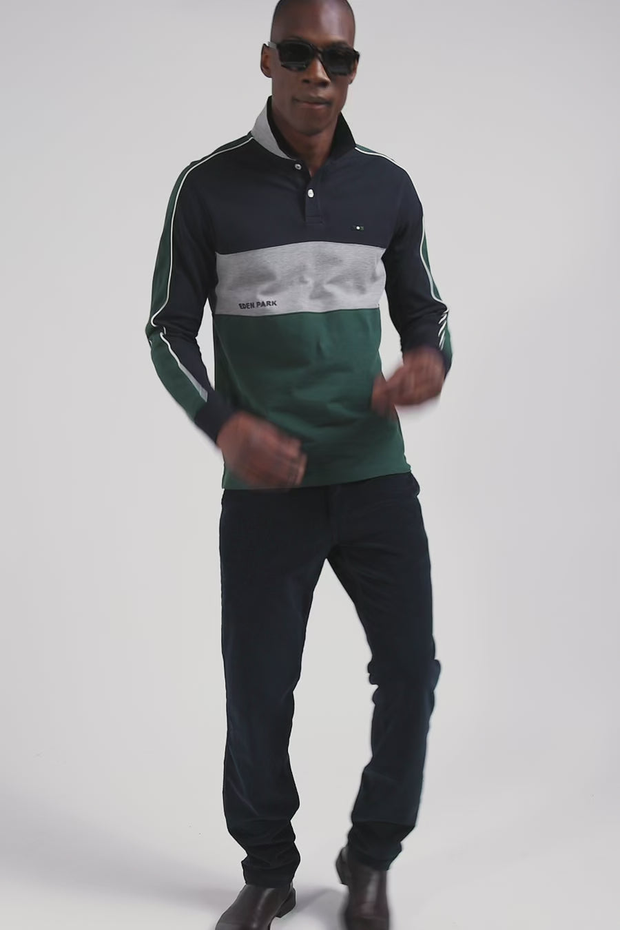 Our cotton piqué polo features a two-tone front panel and long sleeves in contrasting colors, adding a touch of originality to this timeless classic. Inspired by rugby jerseys, this colorblock polo brilliantly combines contrasting colors in autumnal hues for a striking visual effect. Perfect for those looking to inject a dose of bold style into their everyday wear, while retaining the comfort and quality of piqué cotton.