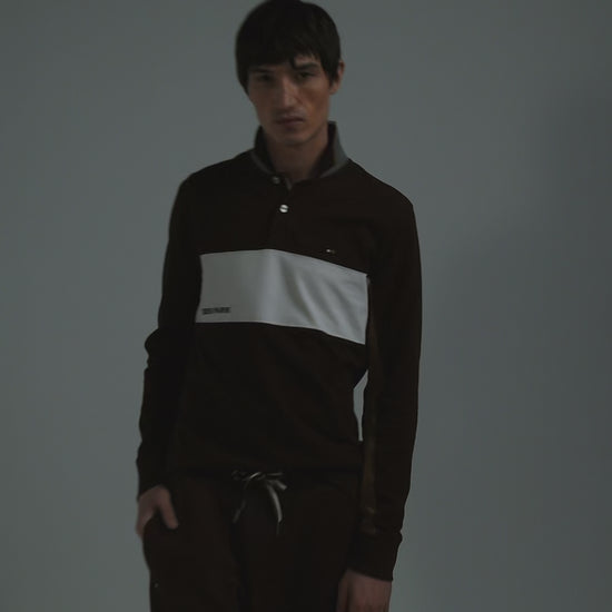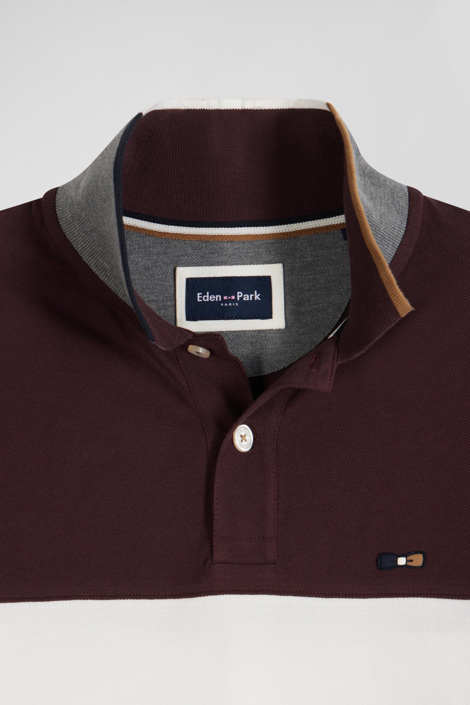Opt for a sporty, elegant look with our colorblock long-sleeve polo shirt. Its sleek design is enhanced by a wide white stripe contrasting with the EDEN PARK lettering for a dynamic touch. Ideal for both casual and dressy wear, this men's polo features cut-out sleeves highlighted by piping. This model is available in three of our autumn-winter colors.