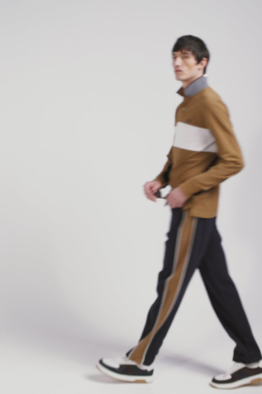 Opt for a sporty, elegant look with our colorblock long-sleeve polo. Its sleek design is enhanced by a wide white stripe contrasting with the EDEN PARK lettering for a dynamic touch. Ideal for both casual and dressy wear, this men's polo features cut-out sleeves highlighted by piping. This model is available in three of our autumn-winter colors.