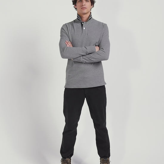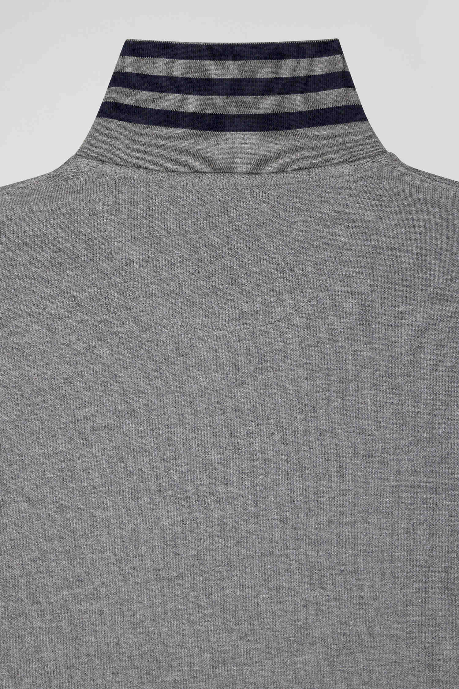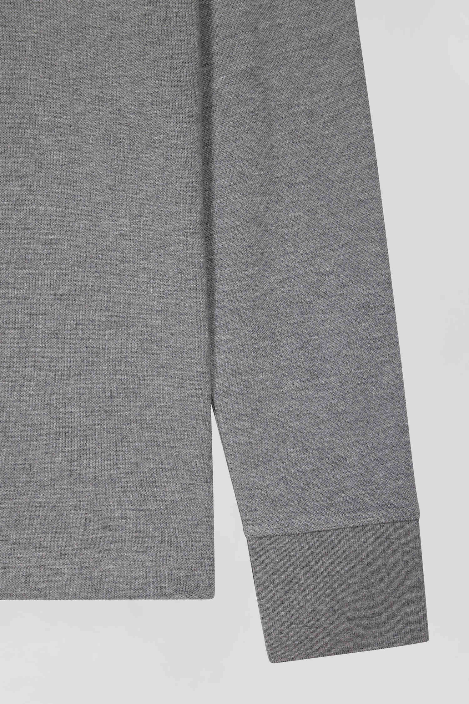Long-sleeved grey cotton piqué polo shirt