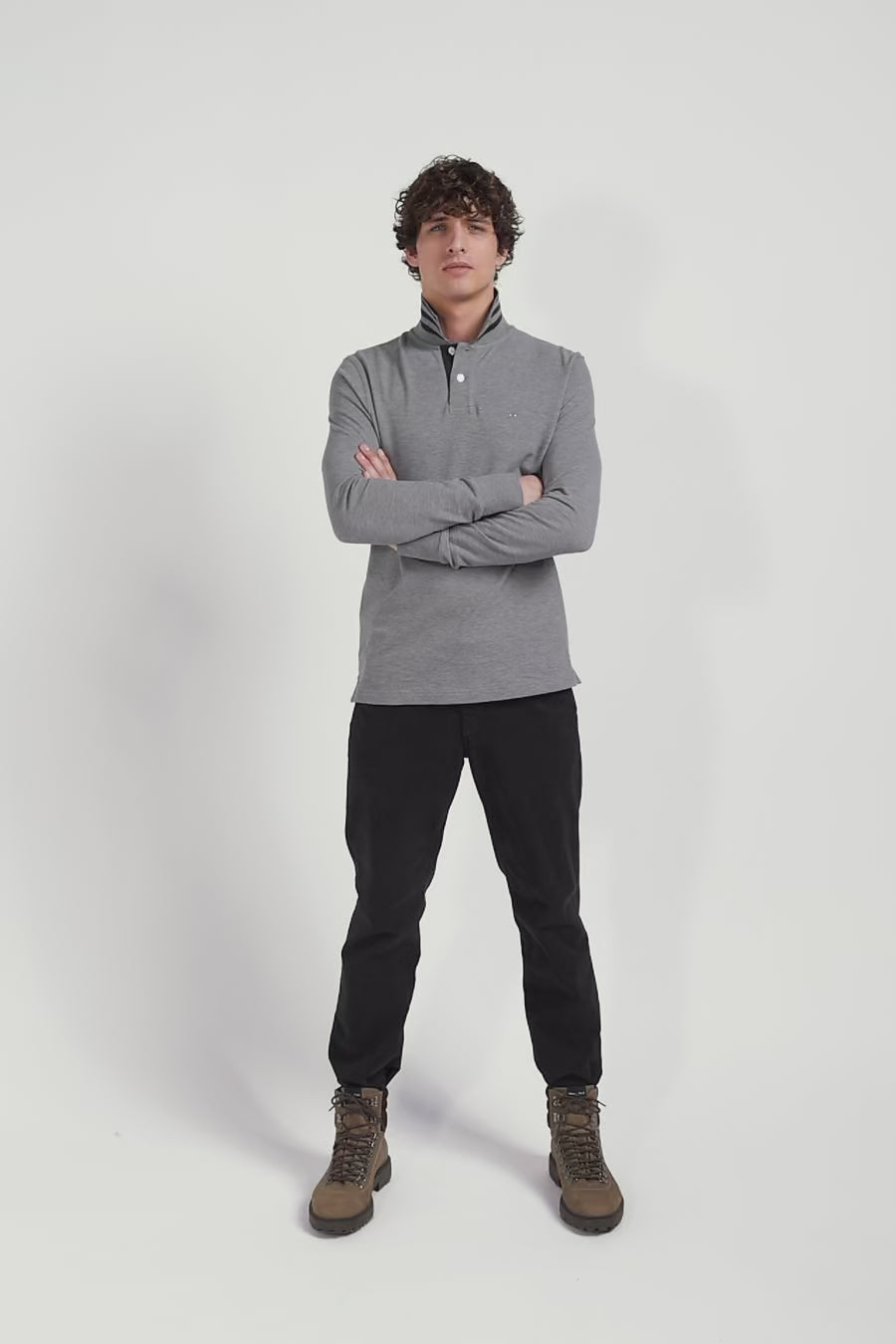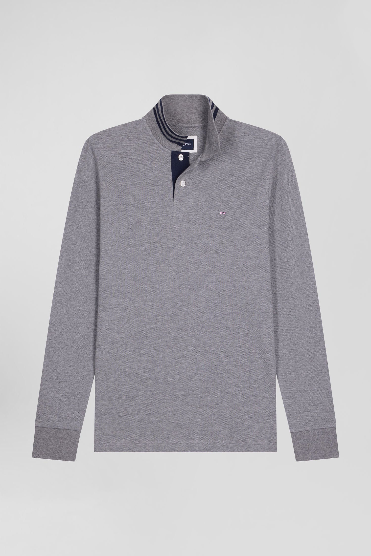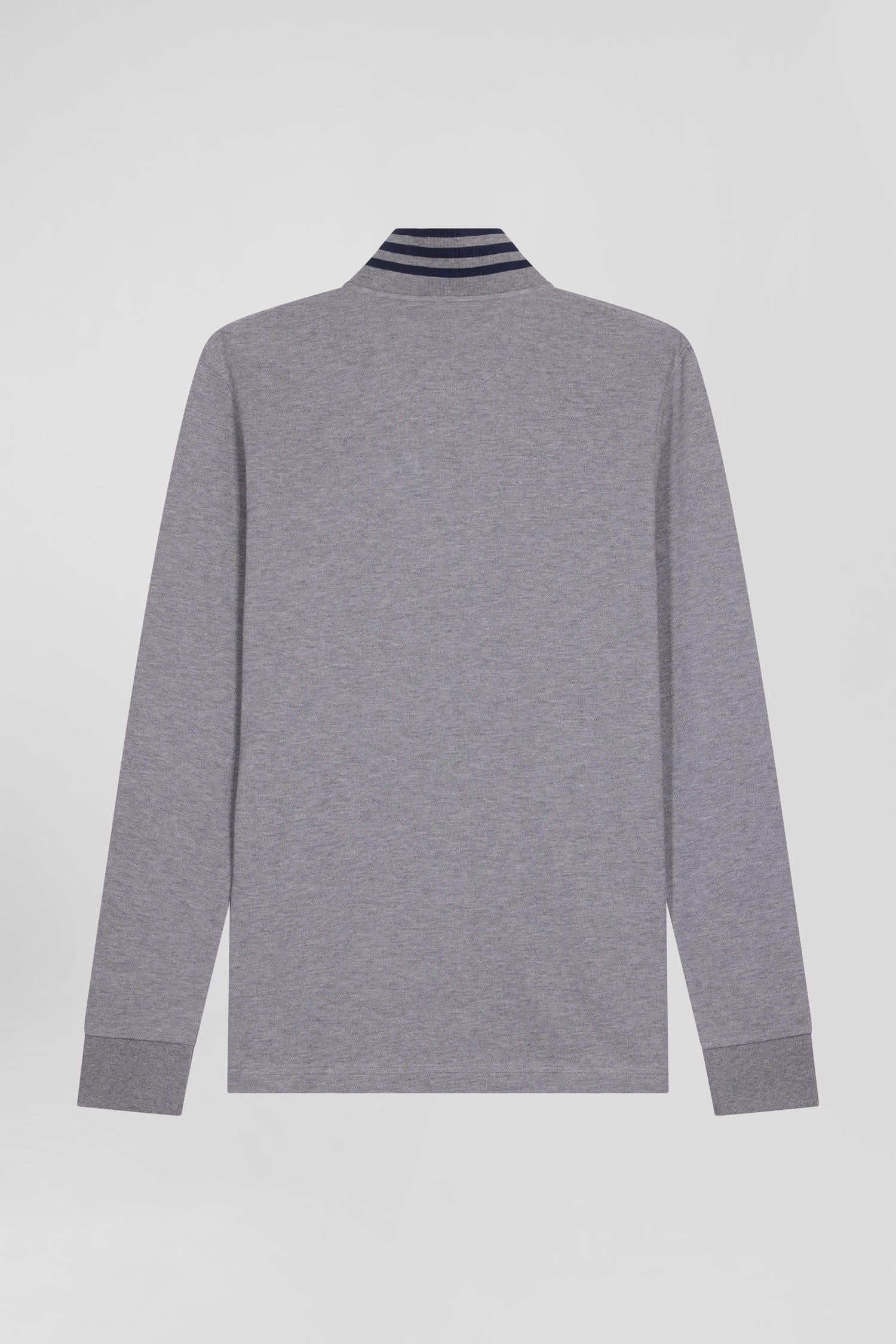 Long-sleeved grey cotton piqué polo shirt