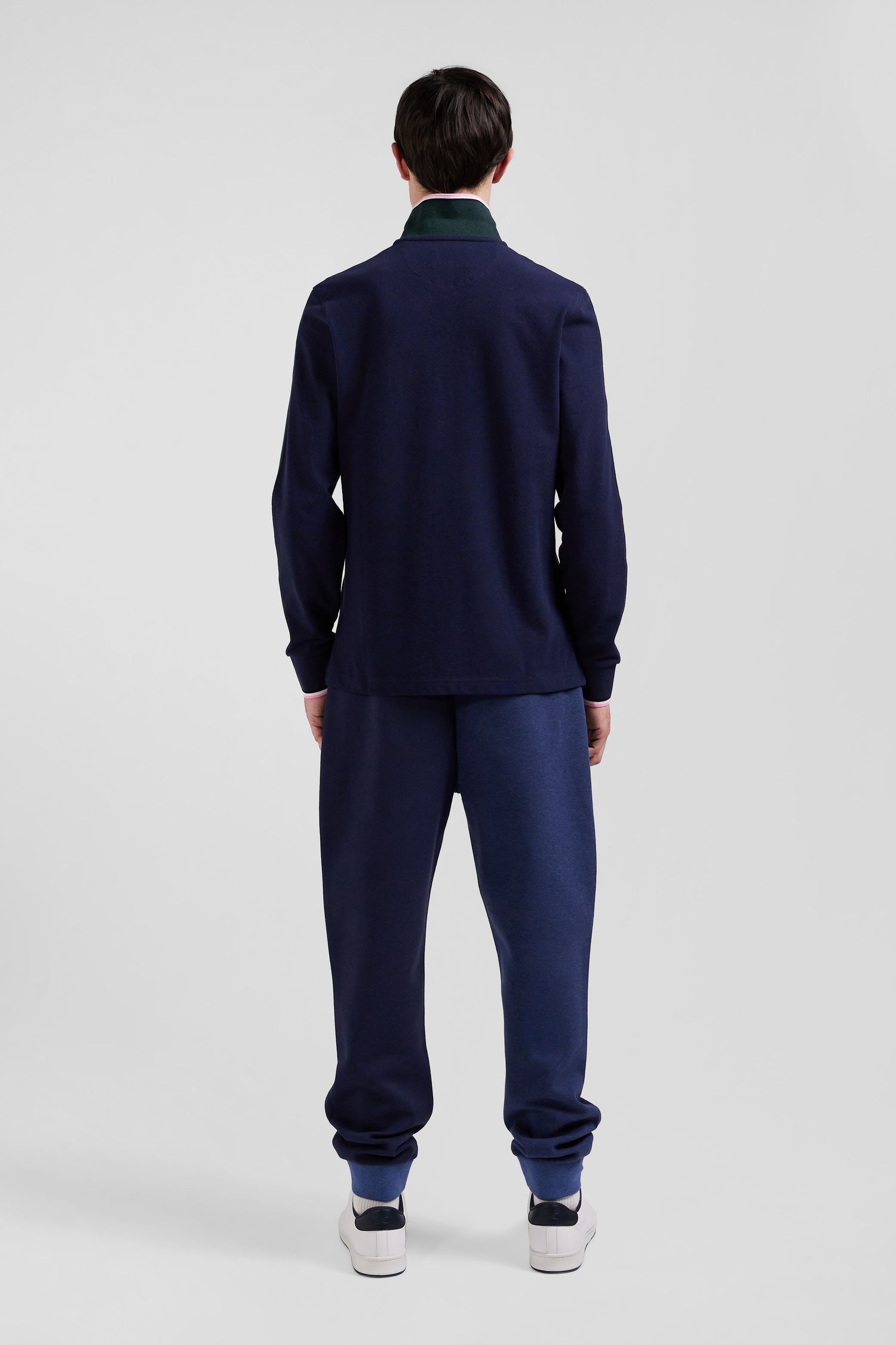 Complete your collection of iconic Eden Park spirit pieces with this men's long-sleeved cotton piqué polo, perfect for every moment. Its modern look is enhanced by a distinctive silicone patch and elegant collar with tricolor trim, embodying the essence of sporty chic.