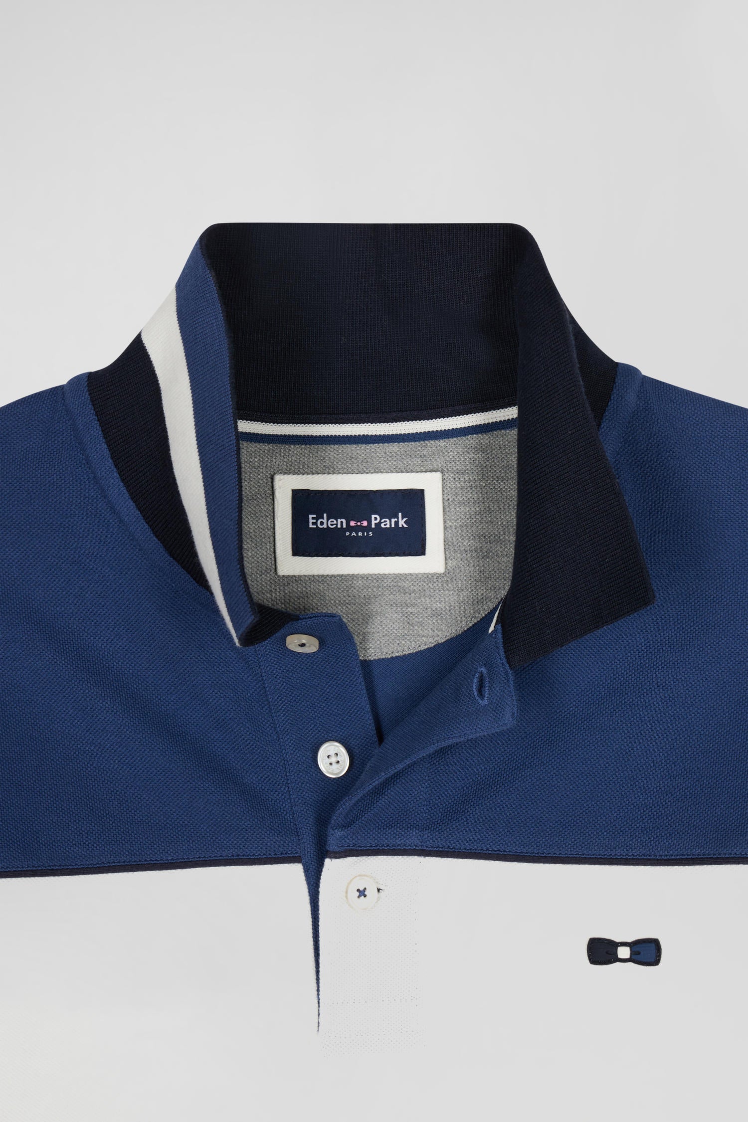 Among Eden Park teams, the colorblock polo shirt has become a firm favorite. This long-sleeved model stands out both for its graphic color scheme and for its tricolored chest embroidery, the emblem of our company.