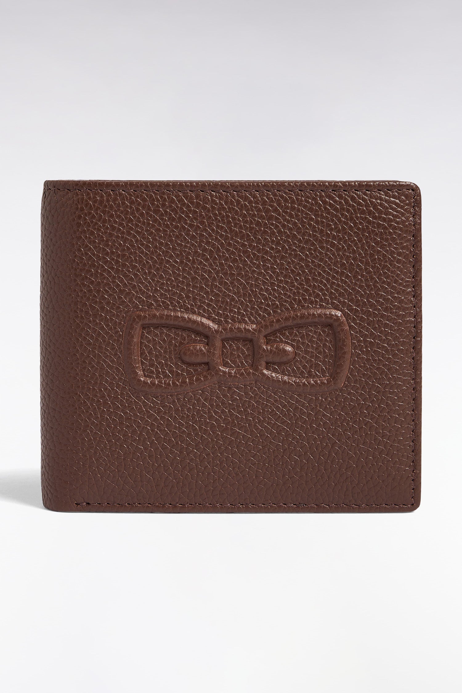 This horizontal Italian wallet combines efficient organization with elegant design. Crafted in black or brown grained leather embossed with our signature bow tie, it features six card slots, an ID window, a coin compartment secured by a snap flap, 2 flat pockets and 2 compartments for banknotes. A discreet accessory designed to accompany you every day with refinement.