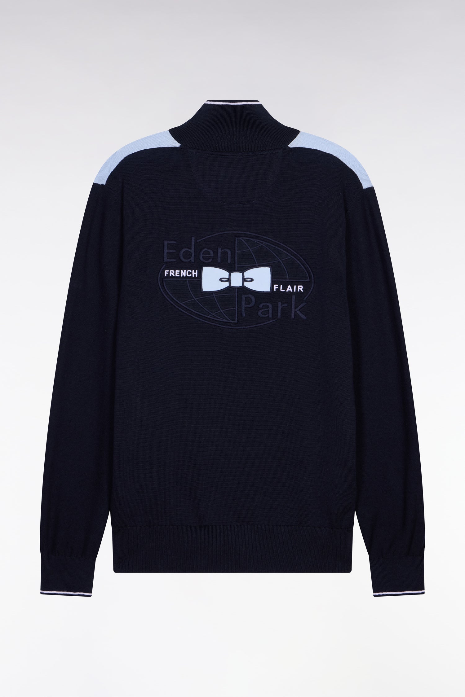 Ce pull homme en coton pur mêlant points jersey, envers et Ottoman combine esprit sportif et confort. Typique de notre vestiaire rugby chic ce pull à col camionneur zippé dispose d'une large broderie dos et d'une rayure blanche en milieu de corps inspiré des maillots. Une pièce essentielle pour un vestiaire léger porté avec un jean comme avec un pantalon cargo. Modèle intemporel proposé en coloris marine et ciel ou marine et rose.
