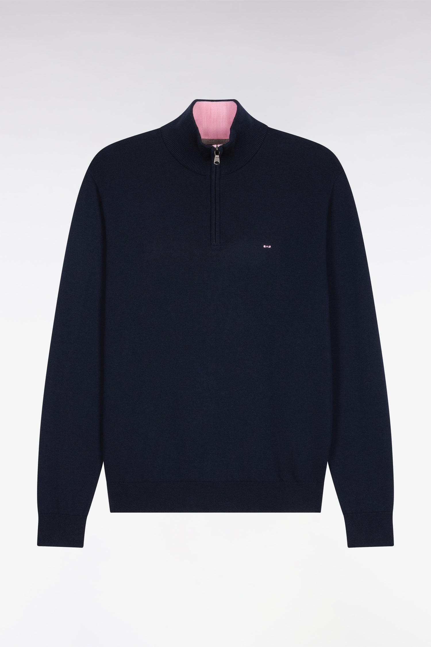 Crafted in a warm, soft cotton knit, this zip trucker neck jumper is all about simplicity. Don't miss this winter must-have, the ideal way to warm up cotton chino trousers and brown leather derbies.