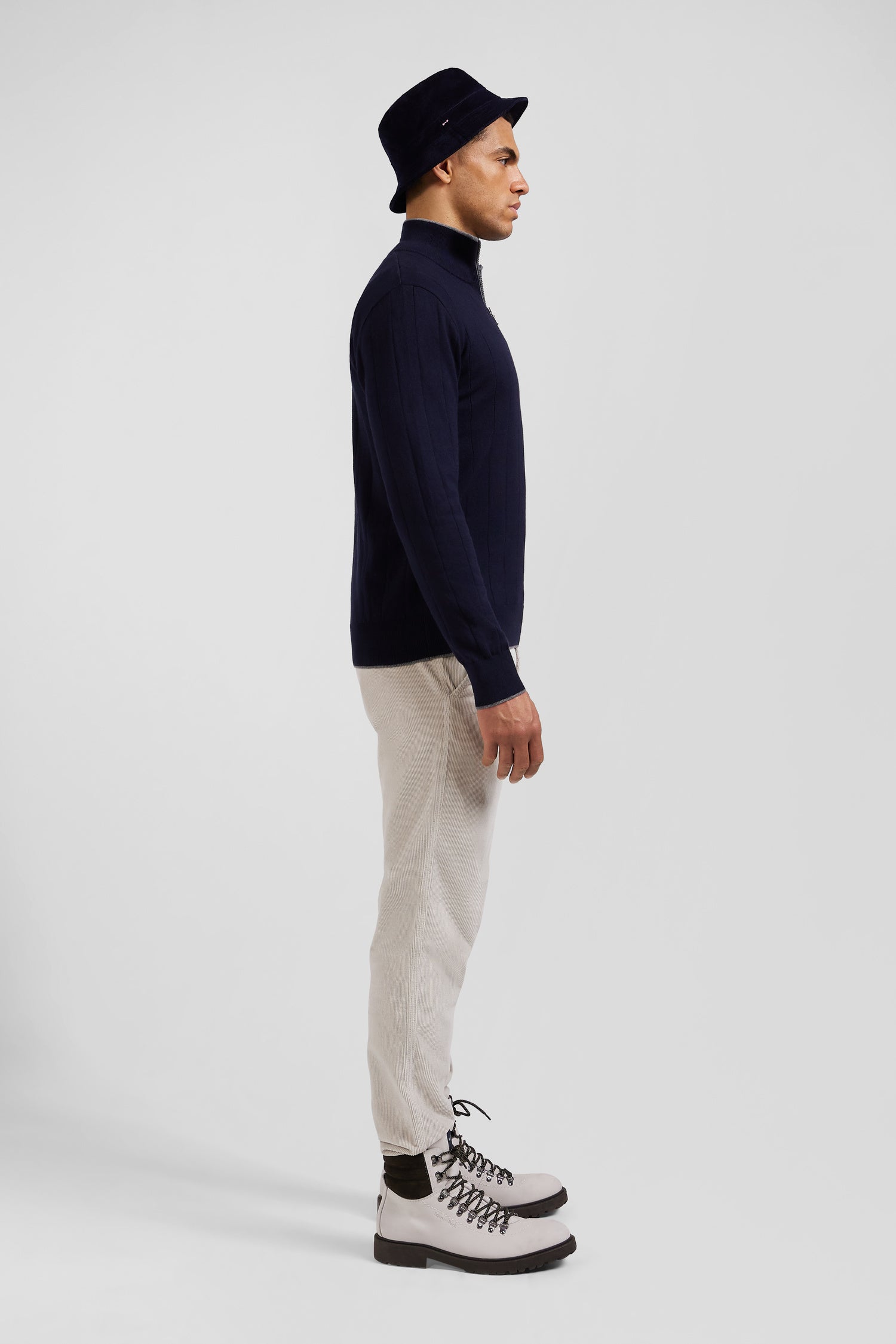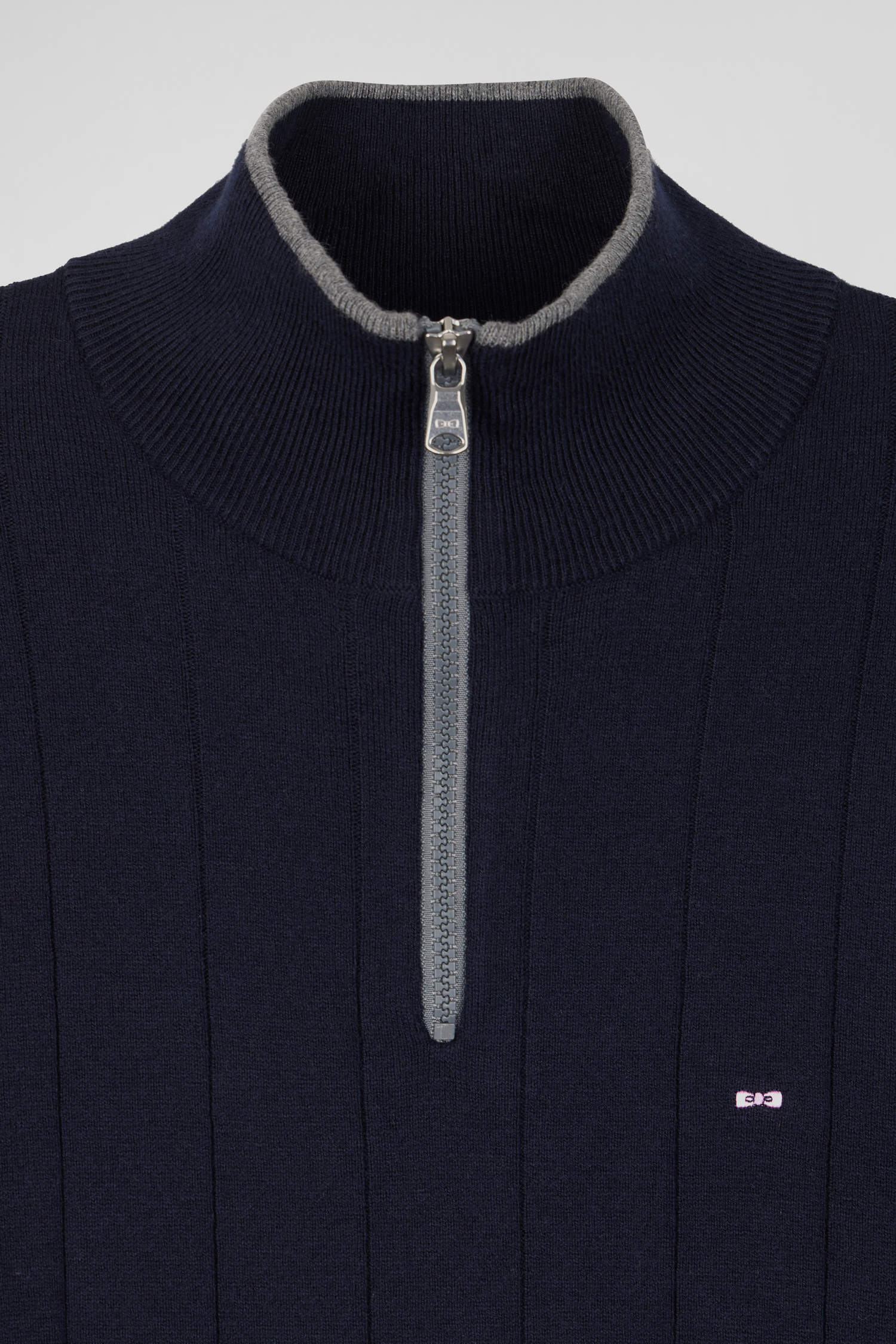 Regular navy blue semi-zipped cotton and cashmere jumper