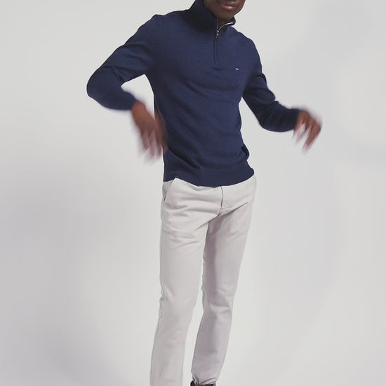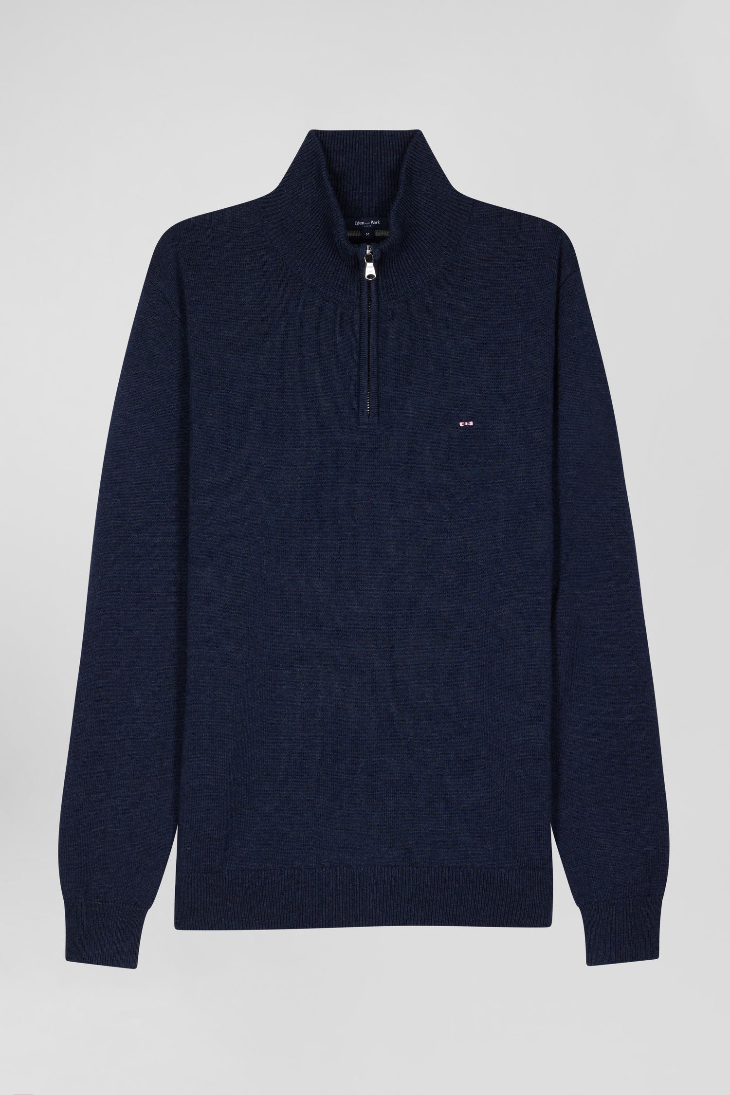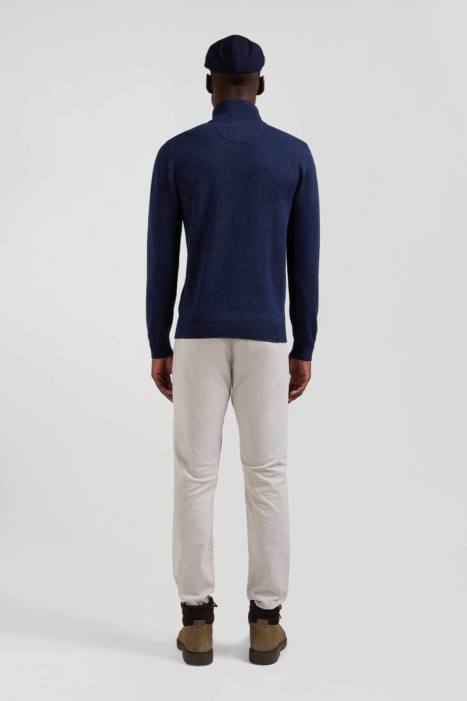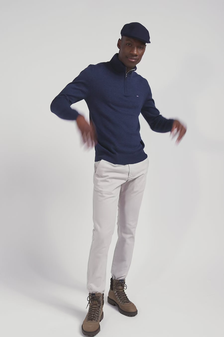 This men's zip-up trucker-neck sweater, lined with a hooped striped inner half-moon, is an essential piece in our autumn-winter collection. Available in a wide range of colors, this high-quality wool and cotton sweater adds a touch of casual sophistication to any outfit. Careful attention to every detail, from the cut to the playful layering, is testament to our commitment to quality finishes, offering unrivalled comfort and distinctive style for all occasions.