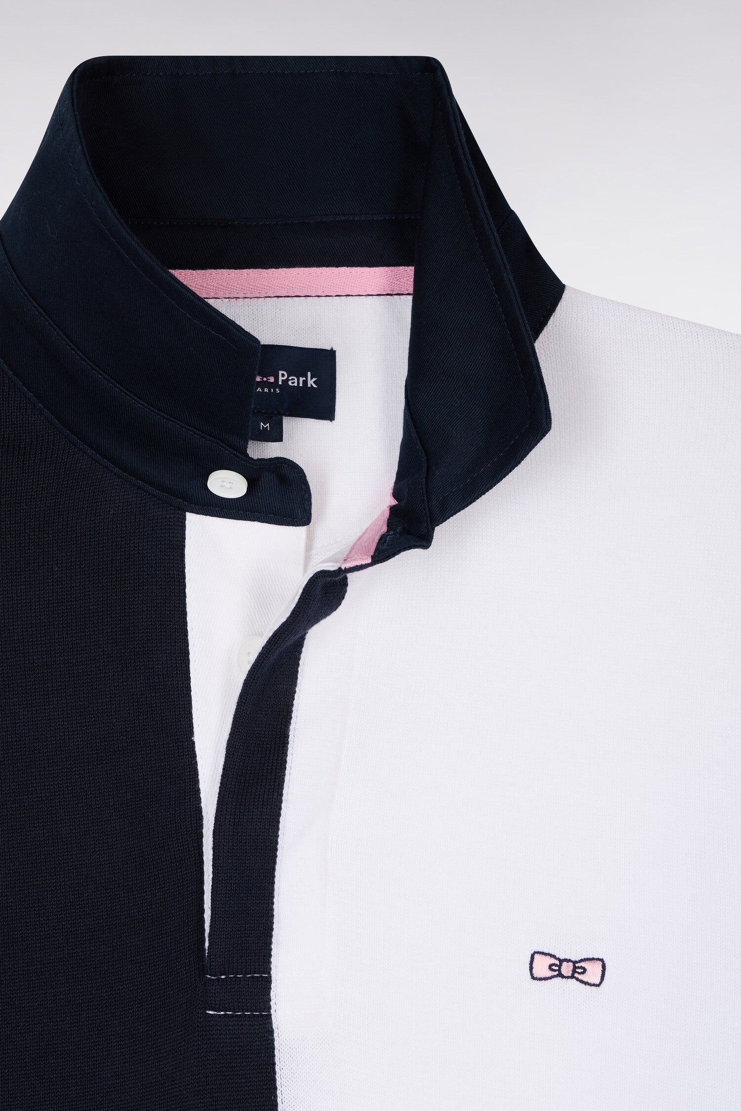 Pull col maillot en coton marine et blanc à manches contrastées