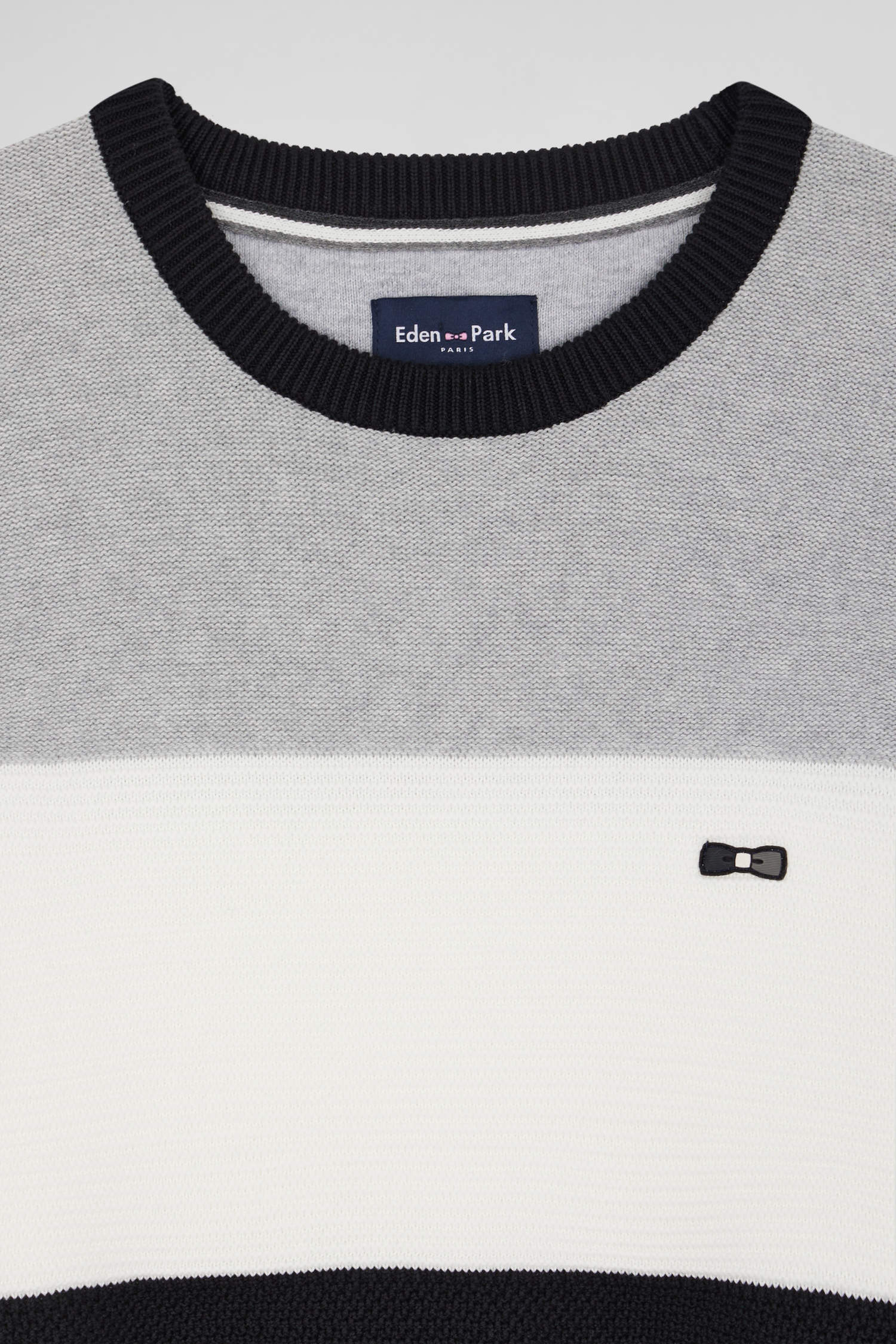 Regular grey and white cotton crew neck jumper with knit patterns