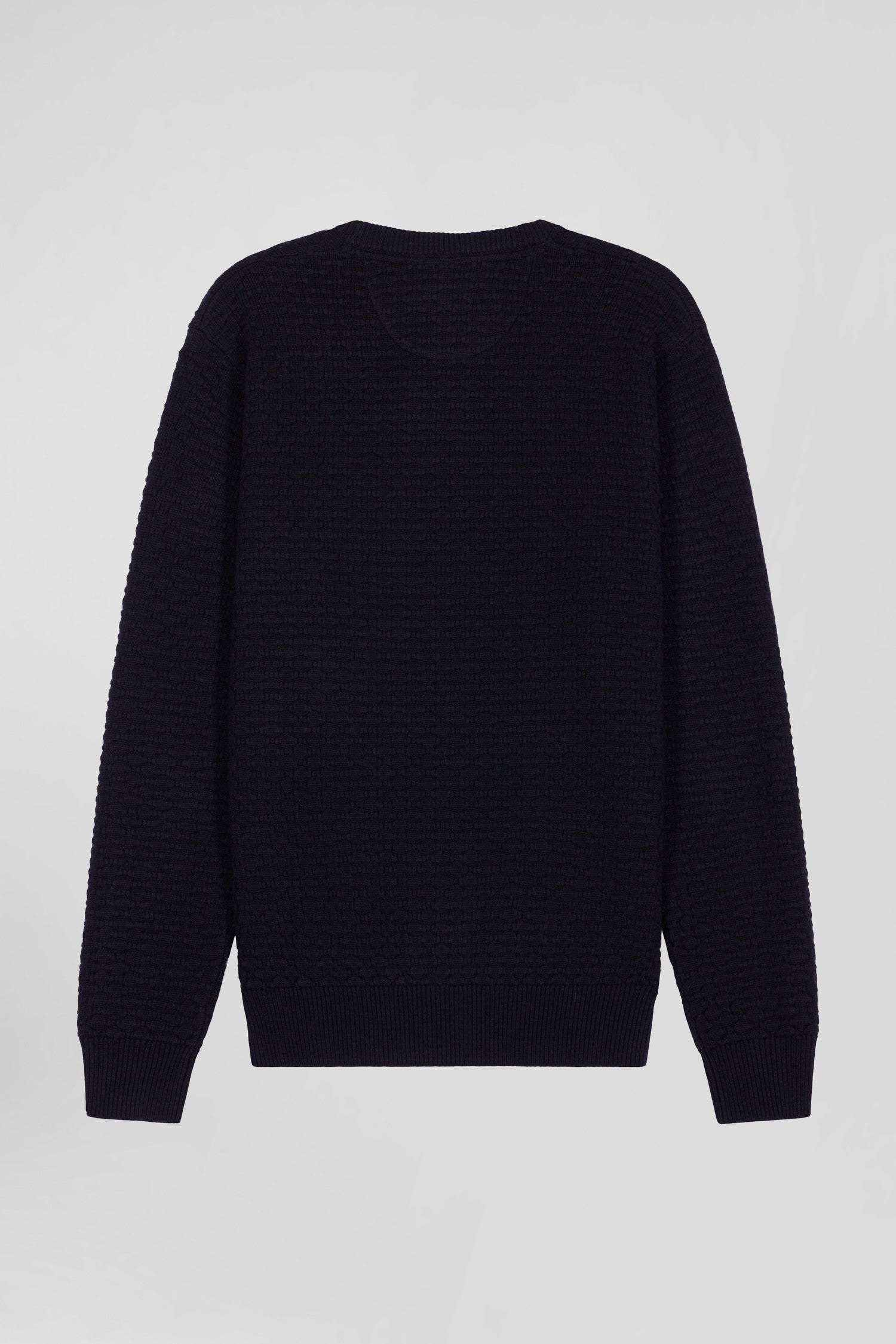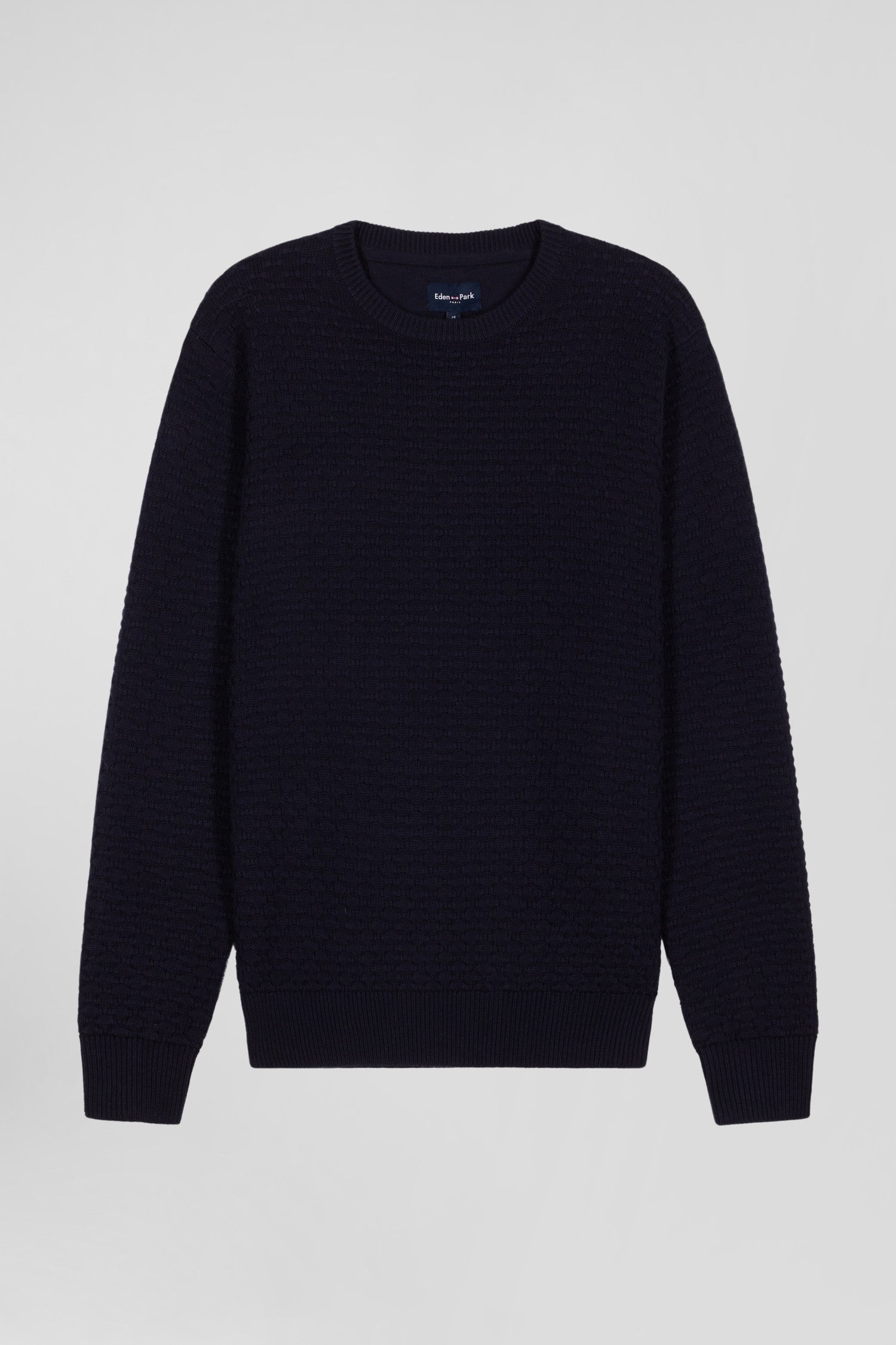 Our round-neck sweater, crafted from a blend of wool and cotton fibers, features a textured micro bow-tie motif, the distinctive Eden Park emblem. This exclusive knit revisits our logo in a subtle, elegant way, for an allover effect that combines discretion and character. This soft sweater, available in 3 colors, is a celebration of our House's identity and masculine elegance.