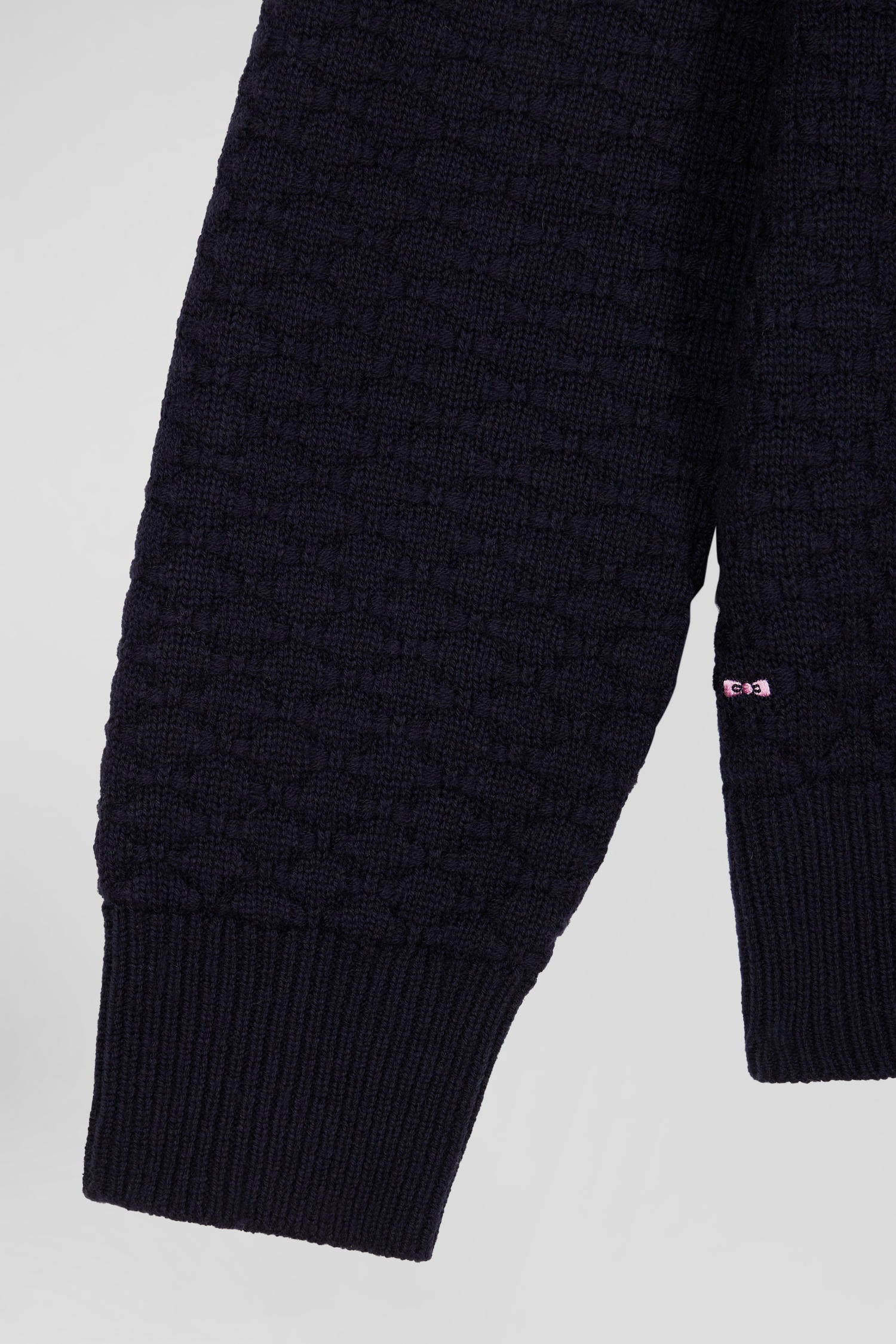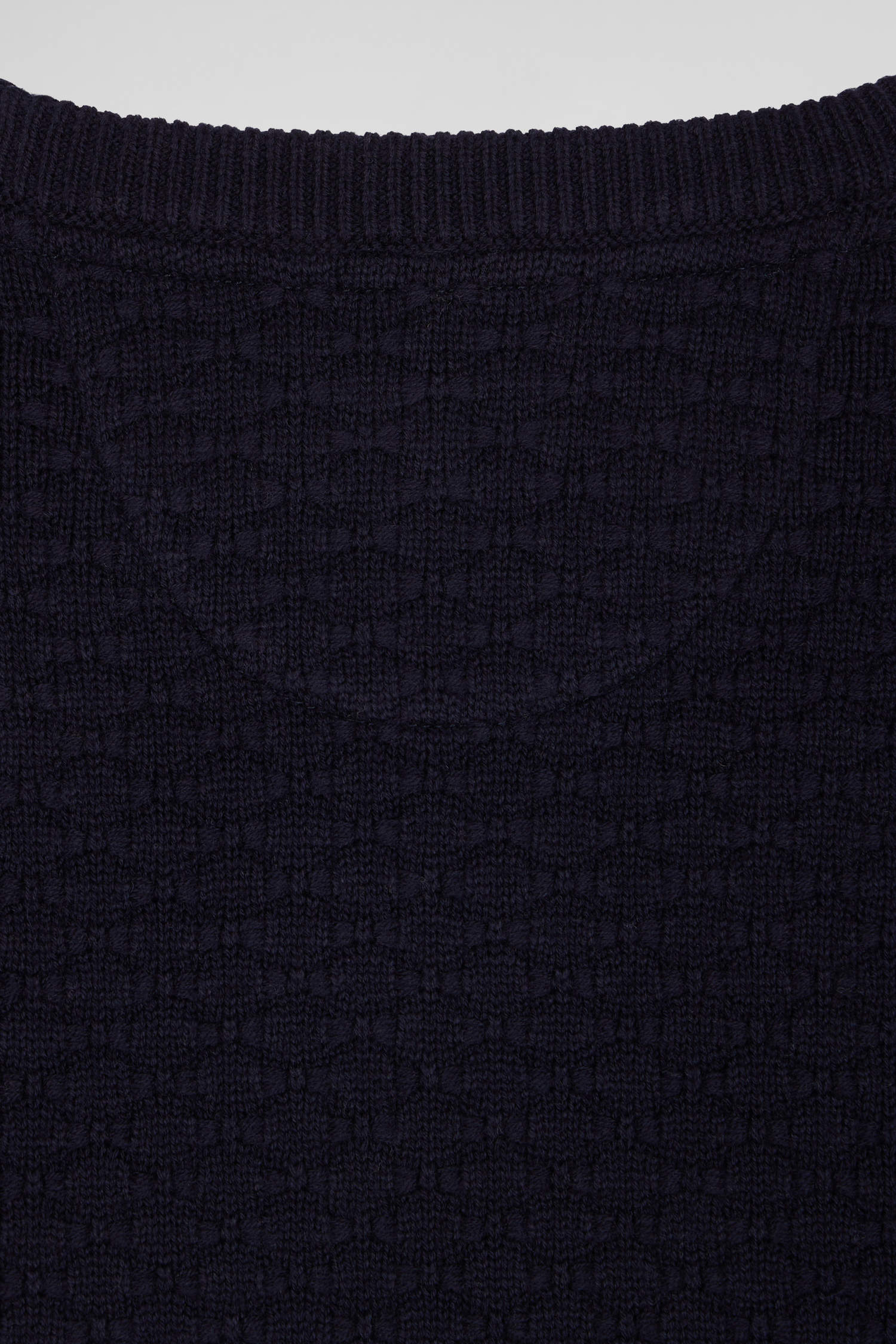 Regular navy blue wool and cotton crew neck jumper with micro bow tie effect