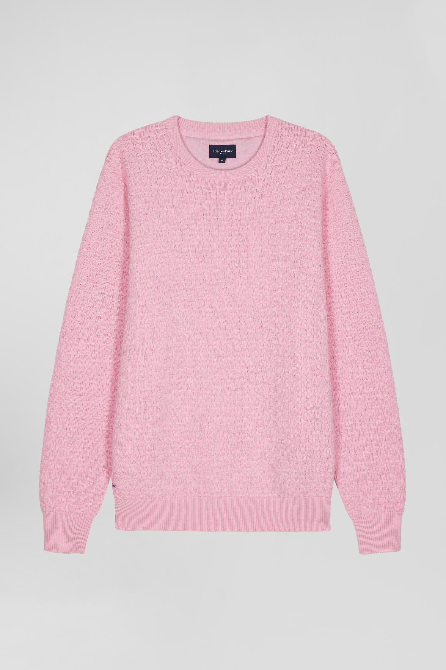 Regular pink wool and cotton crew neck jumper with micro bow tie effect