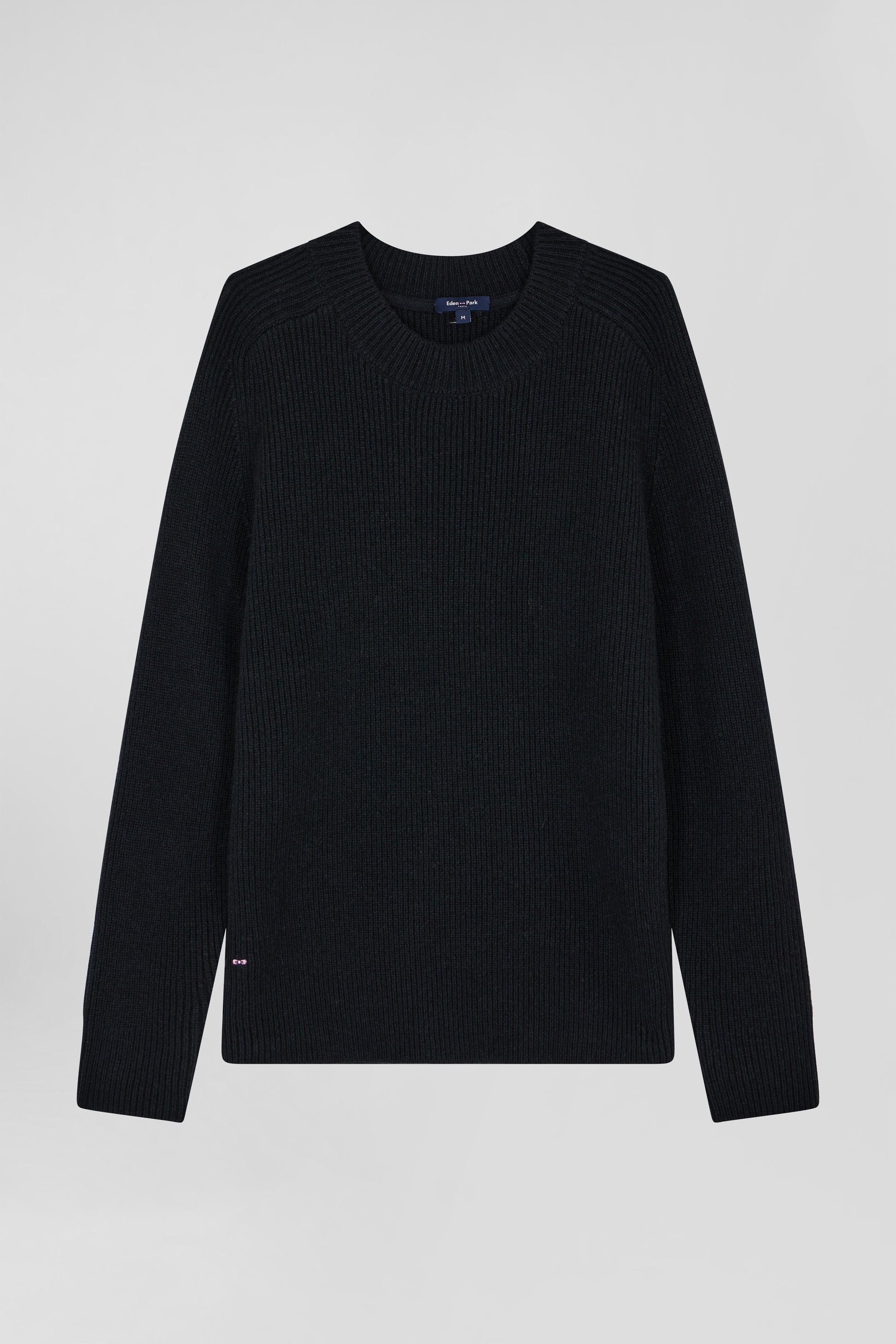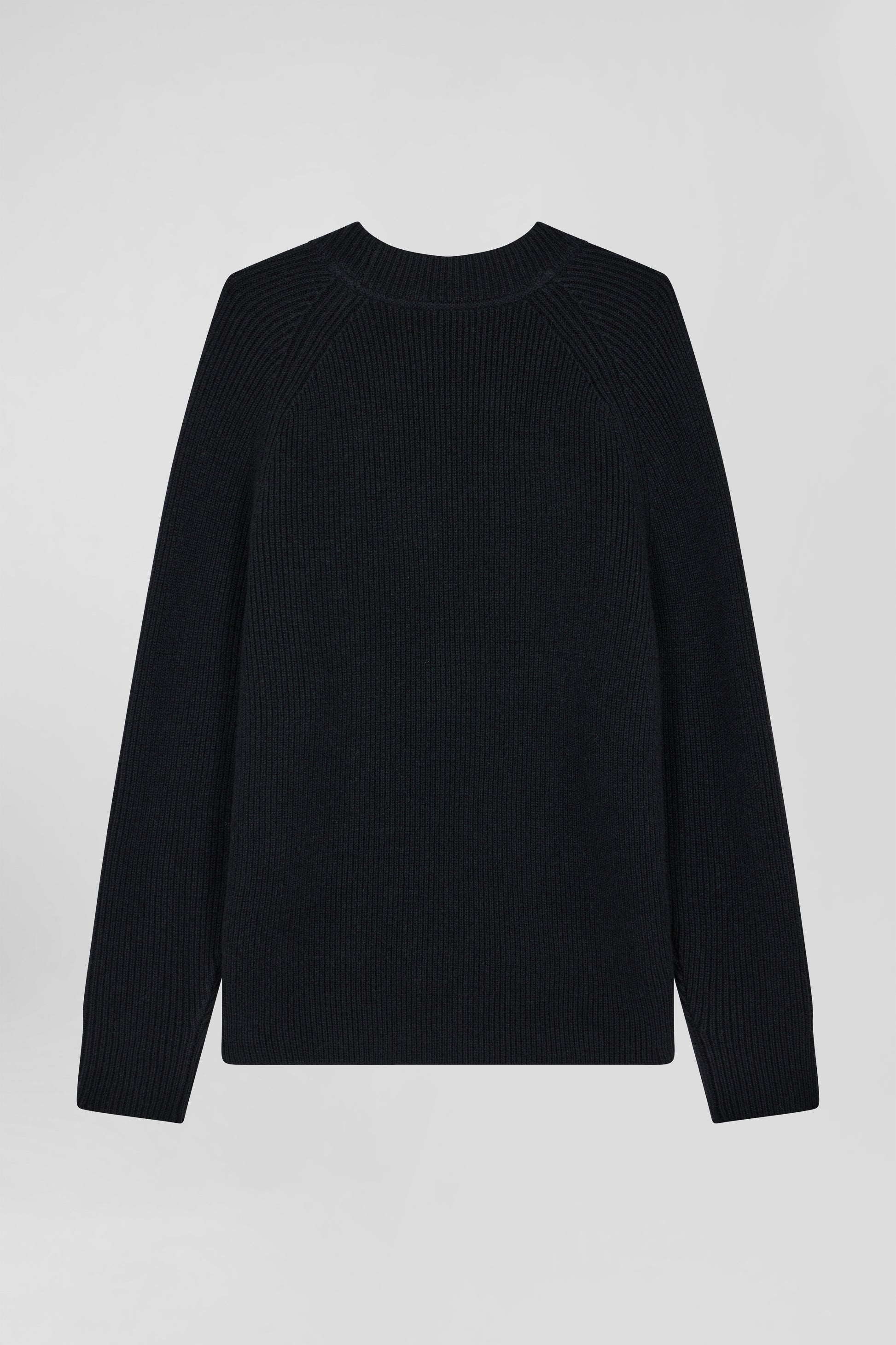 Plain round-neck sweater in black wool and cashmere, regular fit