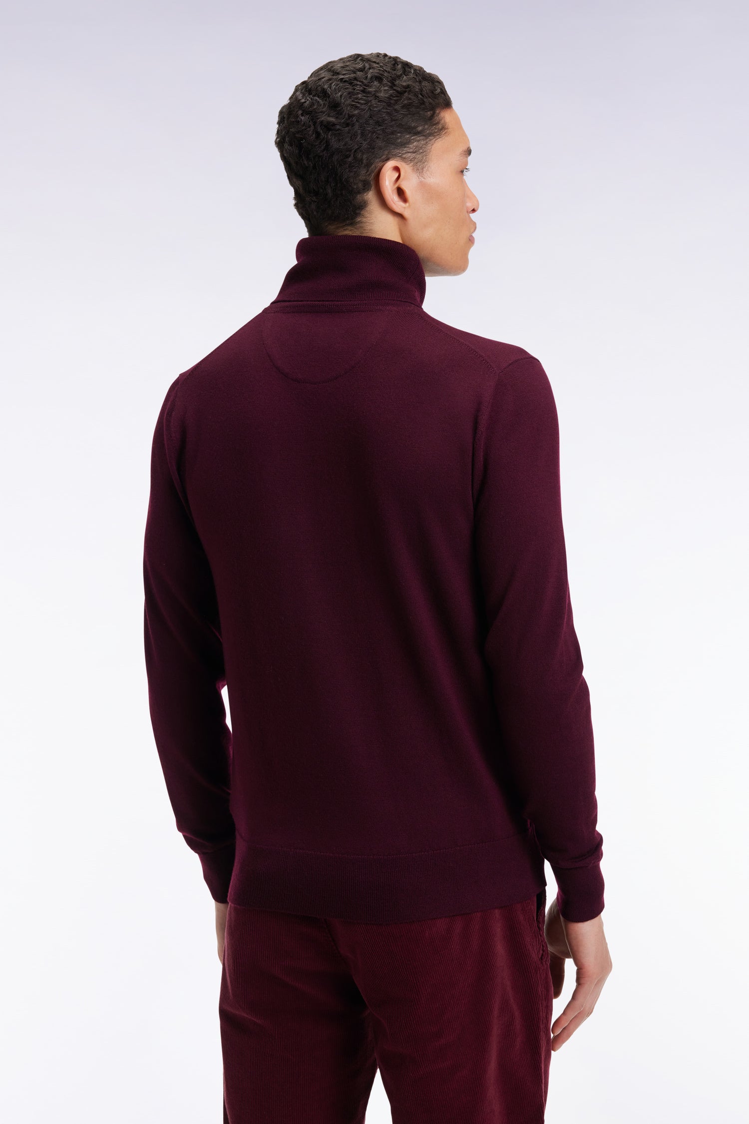The centerpiece of a chic, minimalist winter wardrobe, this turtleneck sweater is made from pure merino wool, a noble wool renowned for its softness, warmth and natural breathability. Knitted in an impeccable knit, this sweater features a comfortable straight cut and meticulous finishing. With its bowtie embroidery on the chest, this merino wool sweater is available in black, burgundy, navy or brown. Wear alone or under a jacket, for an elegant look in all circumstances.