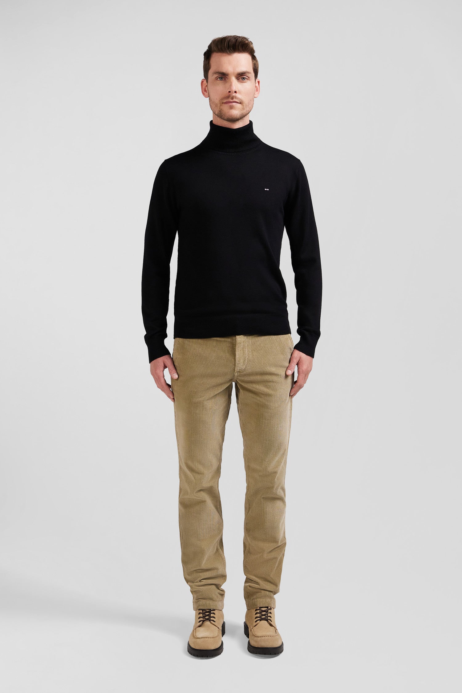 Complete your winter wardrobe with this merino wool turtleneck, a masterpiece combining warmth and refinement. Merino wool, renowned for its exceptional softness and ability to regulate temperature, wraps this men's garment in effortless elegance. Ideal for facing cooler weather in style, this plain turtleneck features a luxurious texture and incomparable comfort, making it a must-have for men seeking a sophisticated sport-chic look.