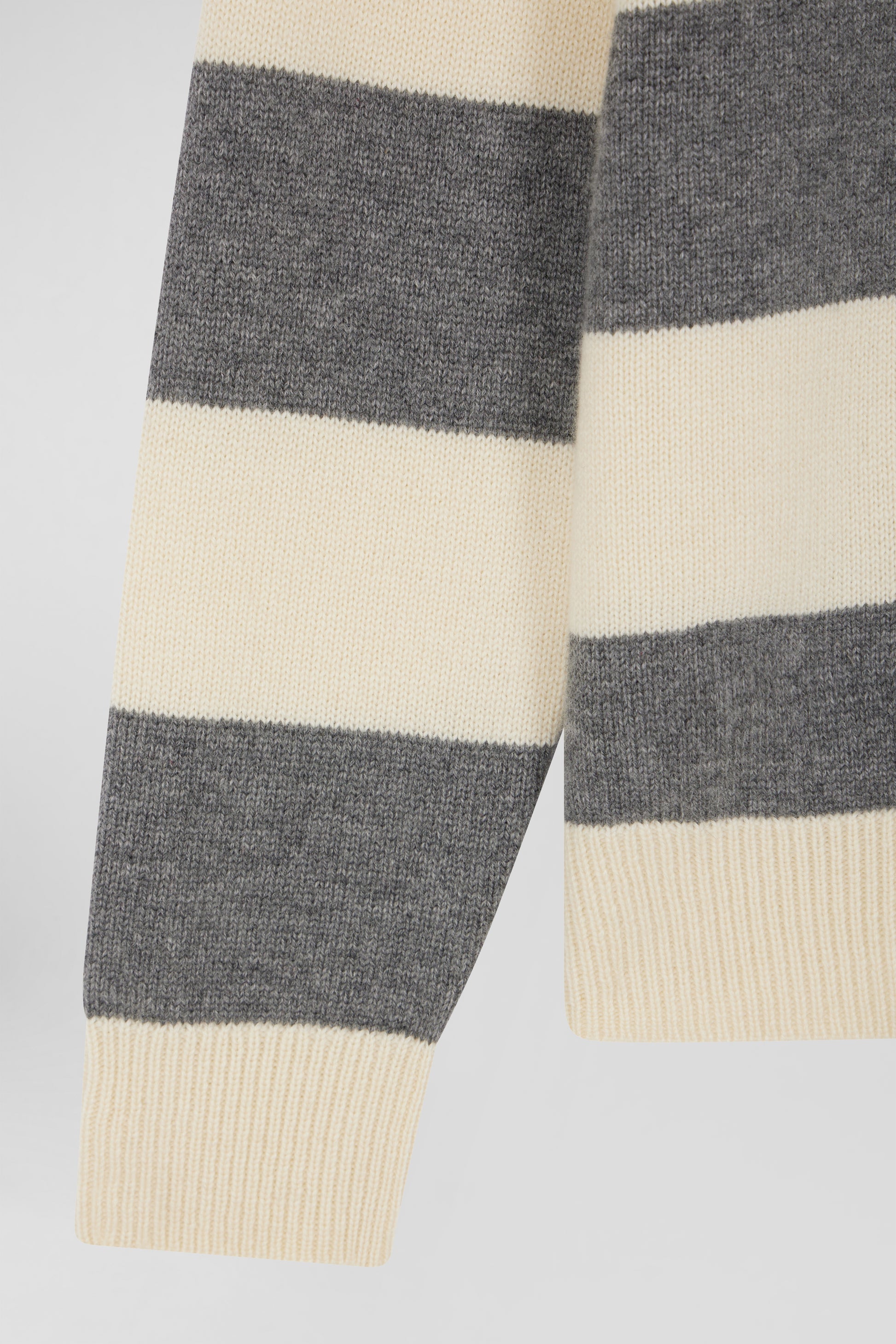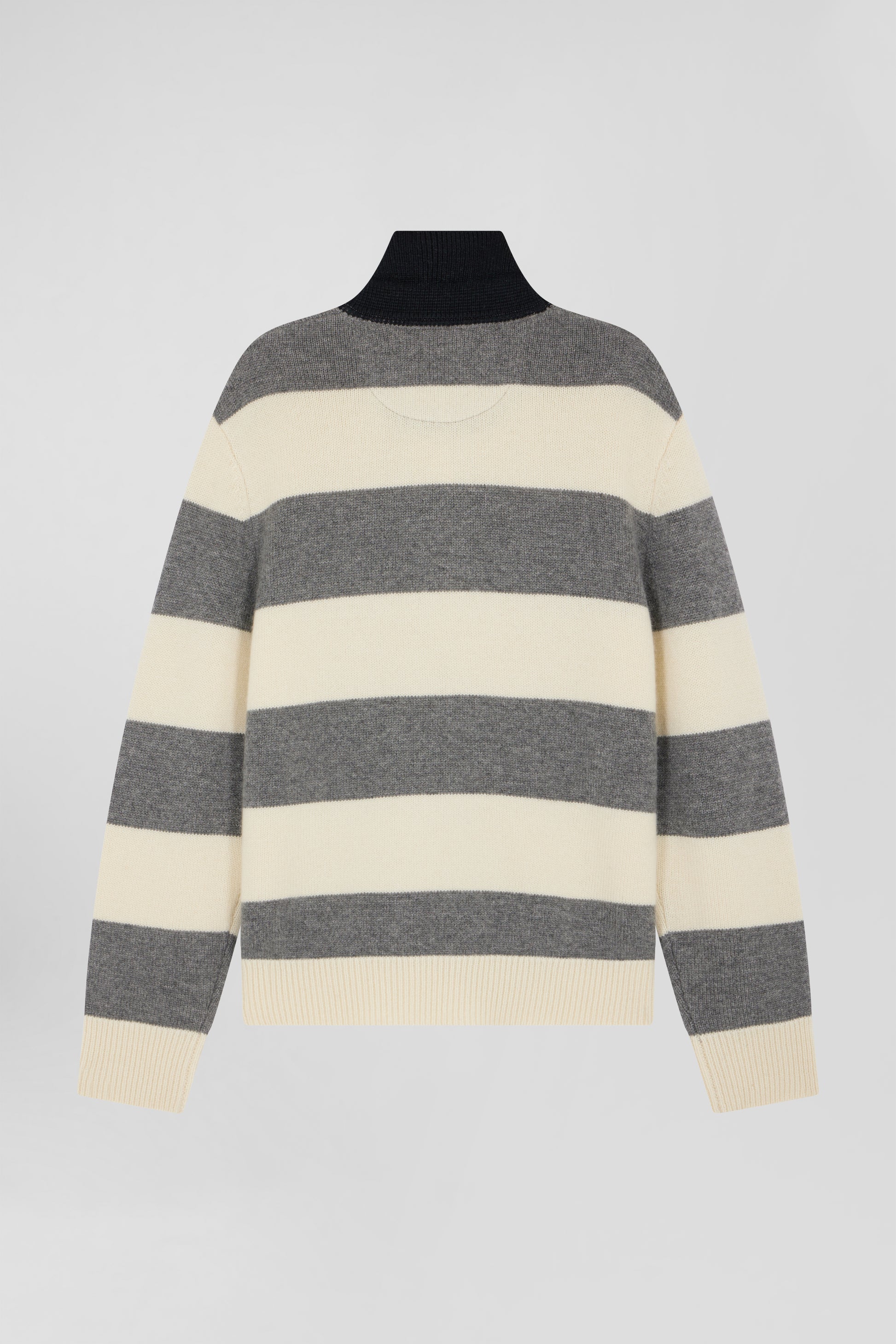 Light grey and ecru striped wool and cashmere polo-neck sweater