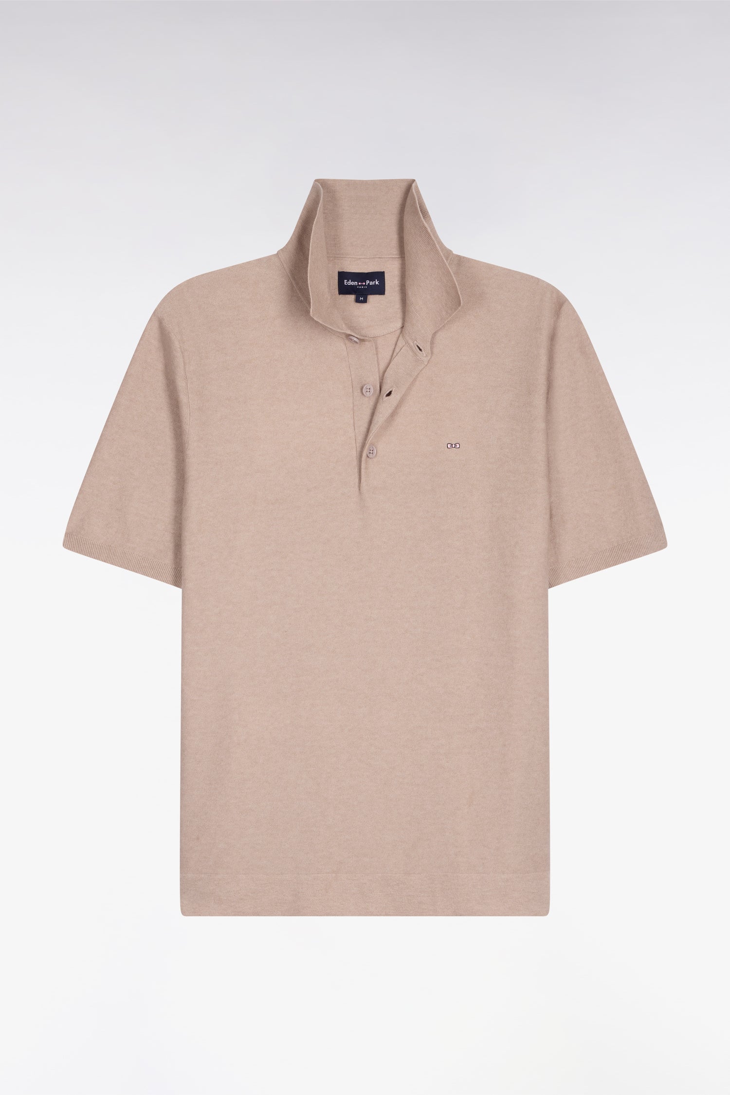 Pull manches courtes à col polo en coton et lyocell mélangés beige