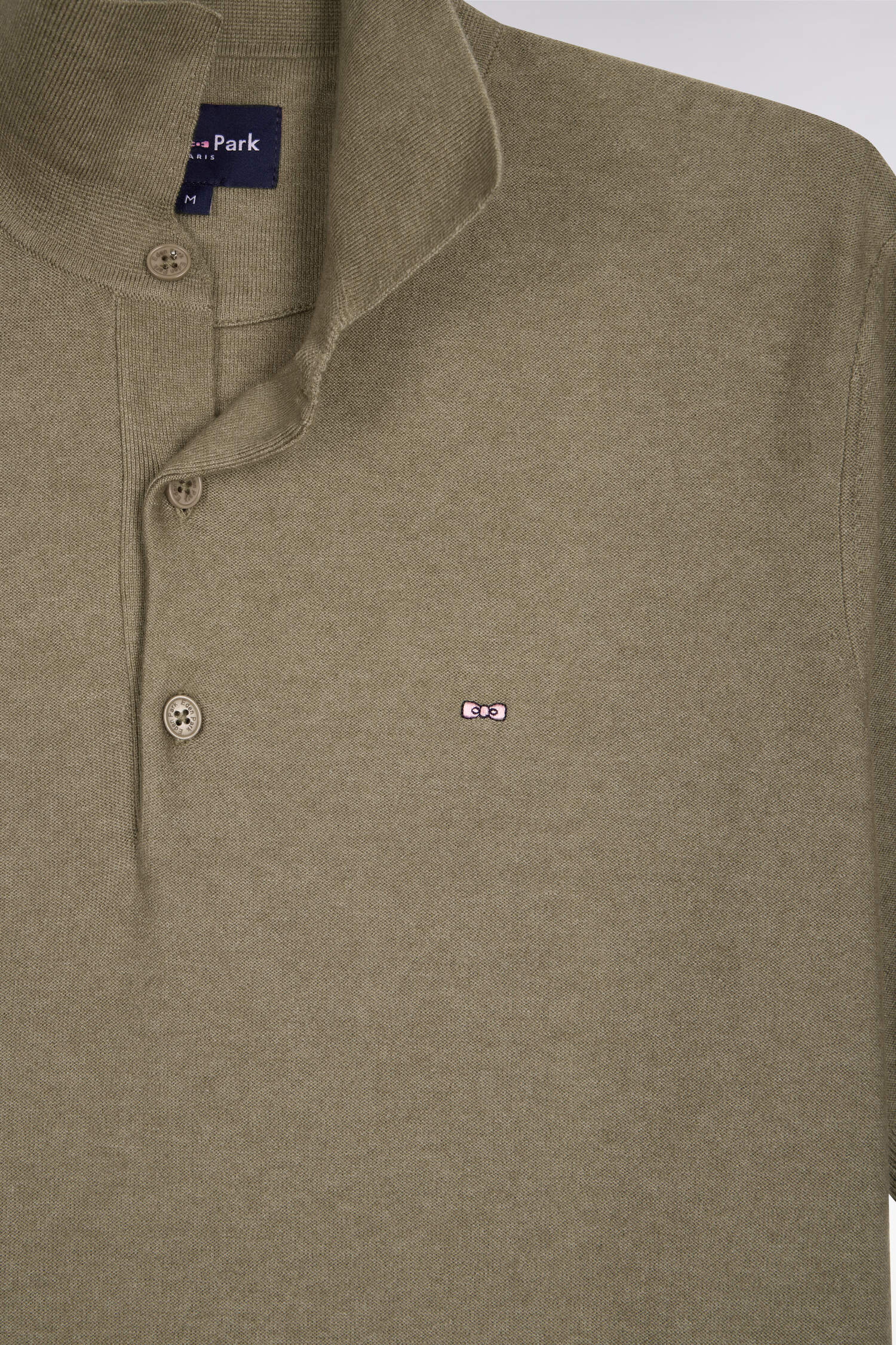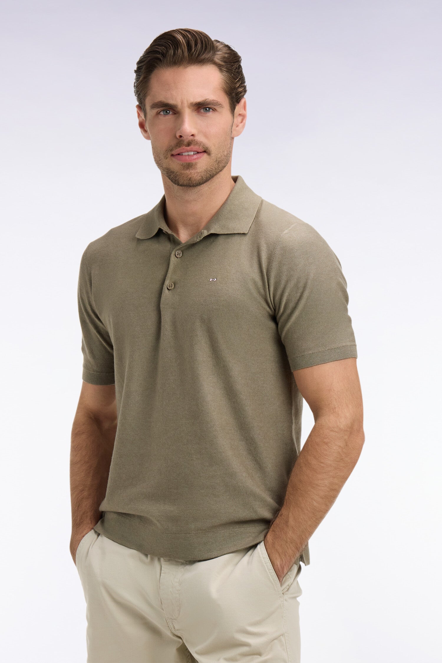 Pull manches courtes à col polo en coton et lyocell mélangés marron
