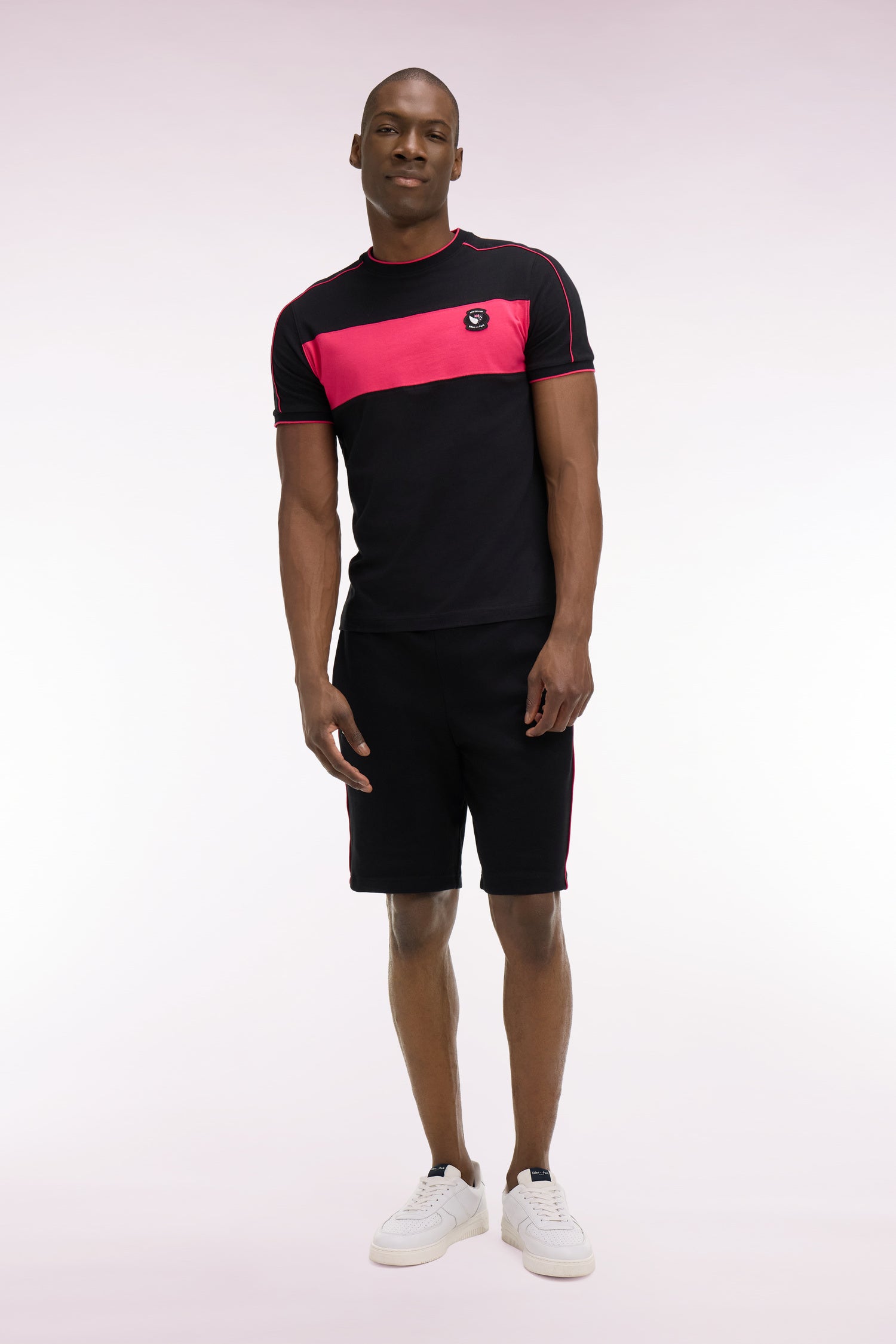 Associez ce short pour homme de la collection rugby Nouvelle-Zélande à son sweatshirt zippé coordonné pour un style plein d’allure, de la Maison jusqu'au stade. En molleton interlock noir ou rose, ce short à coupe droite est rehaussé d’un écusson en gomme 3D et de cordons de serrage siglés, clin d'œil à l’héritage rugby de notre Maison. Ses découpes le long des jambes sont soulignées d'un passepoil contrasté qui dynamise l'allure.