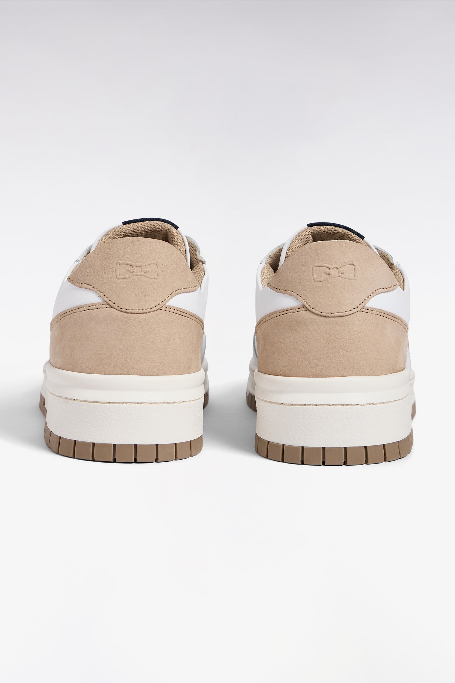Inspired by athletic lines, these low-top sneakers revisit Eden Park codes in a play of noble materials. The upper alternates smooth white leather with beige or gray suede inserts for a subtle contrast. The notched sole is reminiscent of vintage sneakers, while providing comfort and support. A model that combines sporty elegance and assertive style, to be worn in town or at the weekend.
