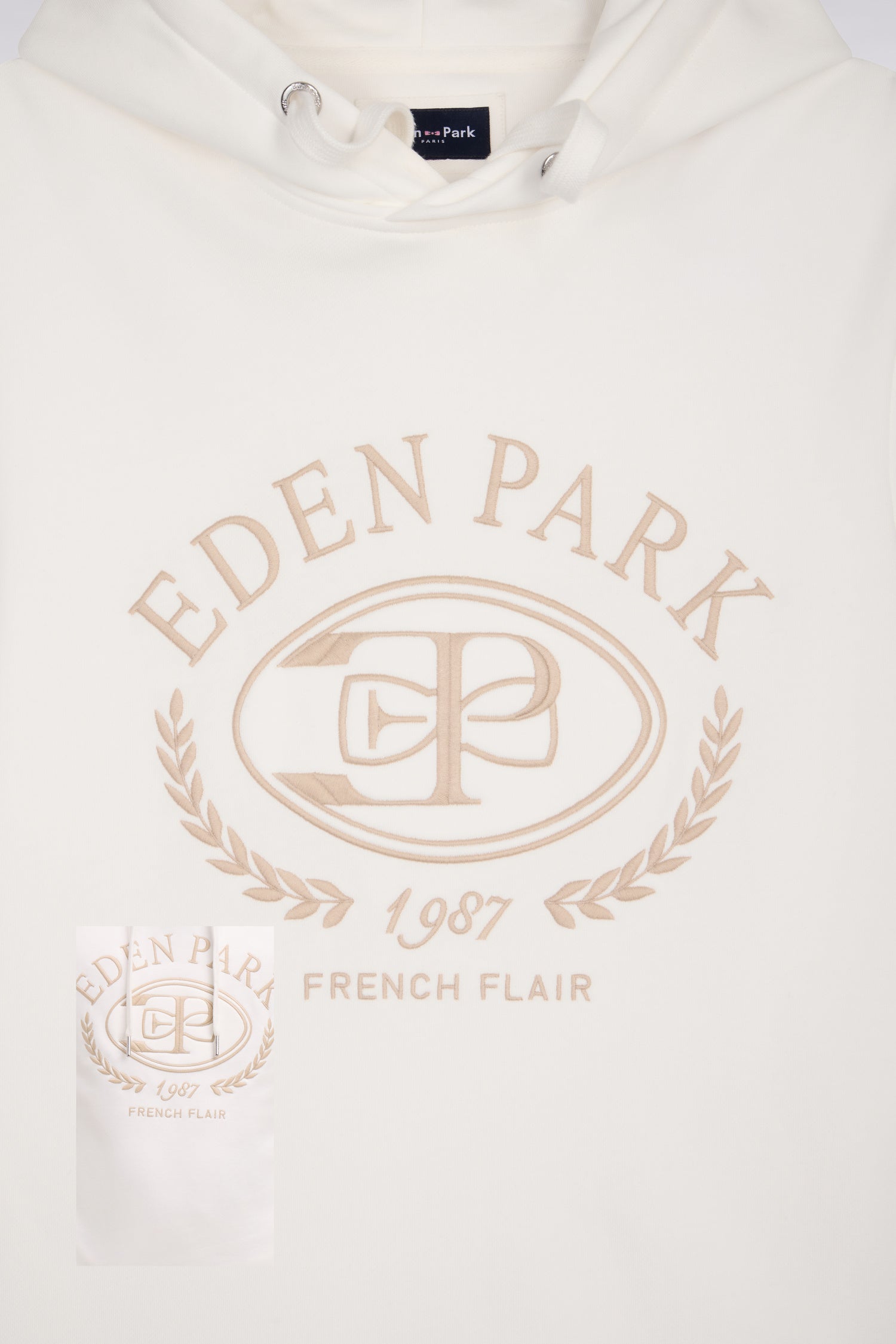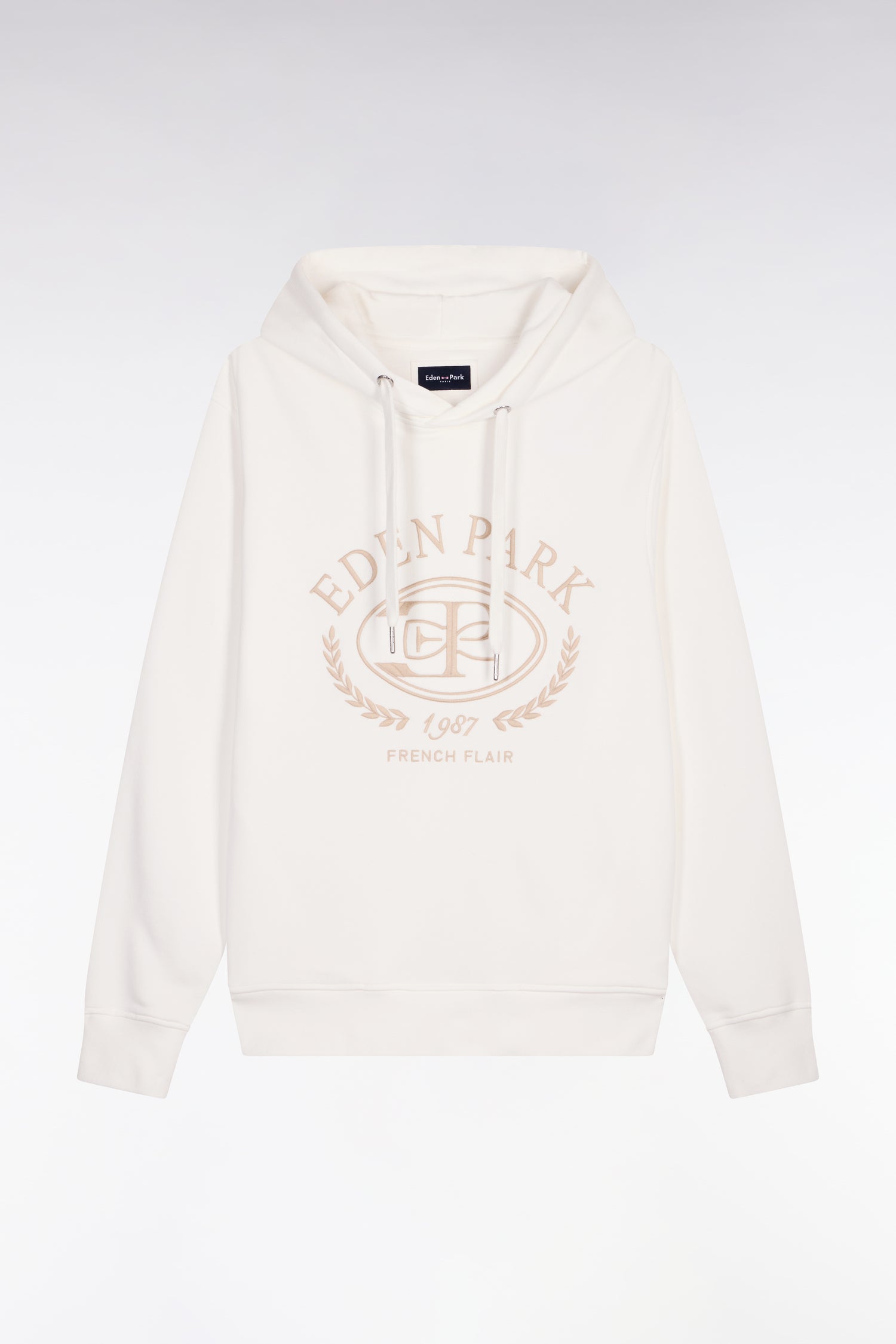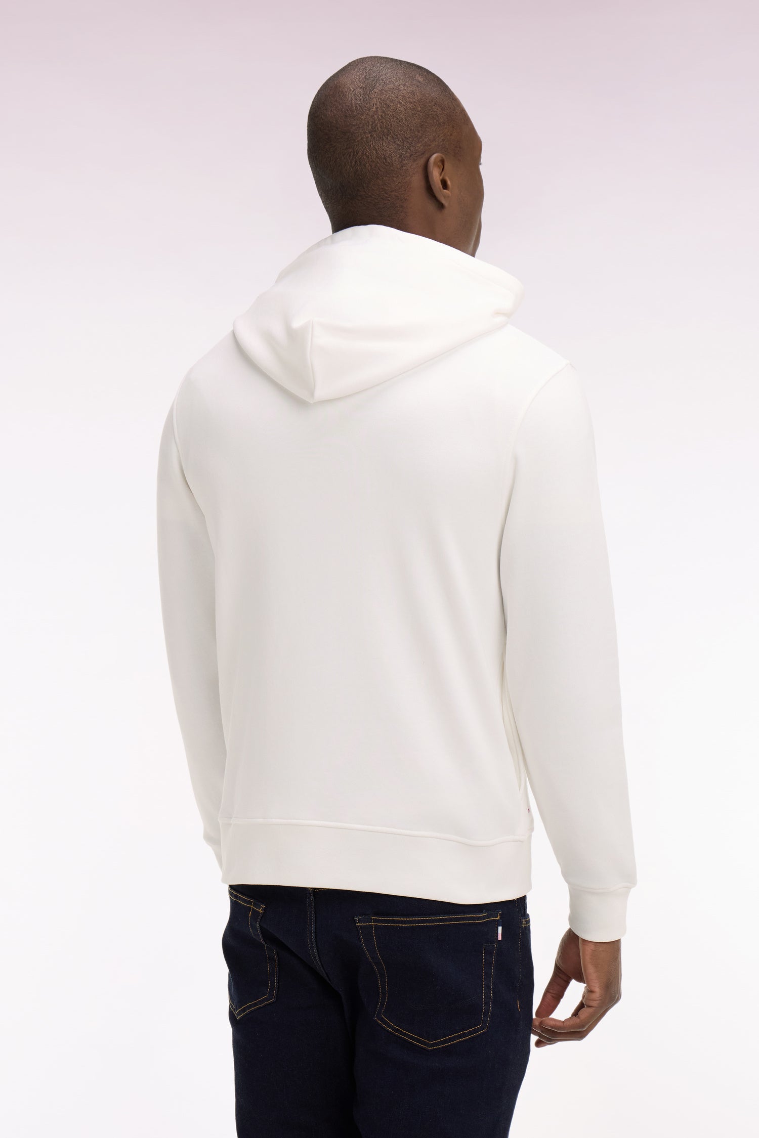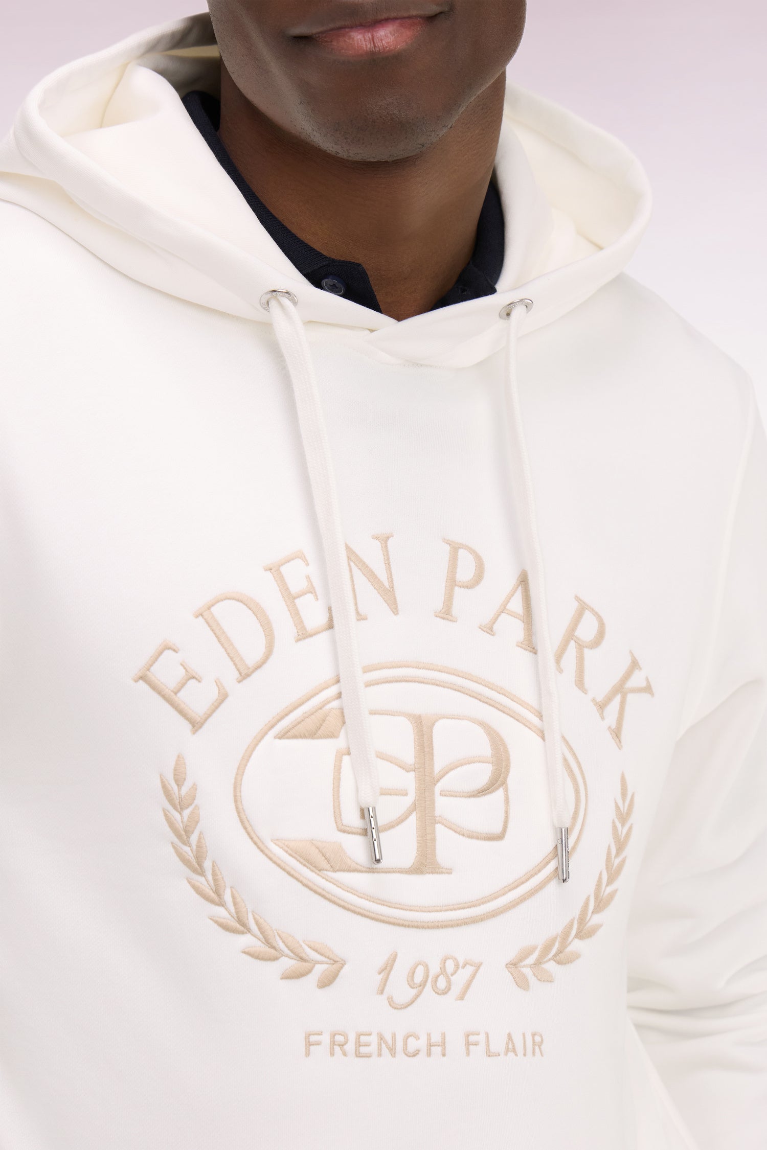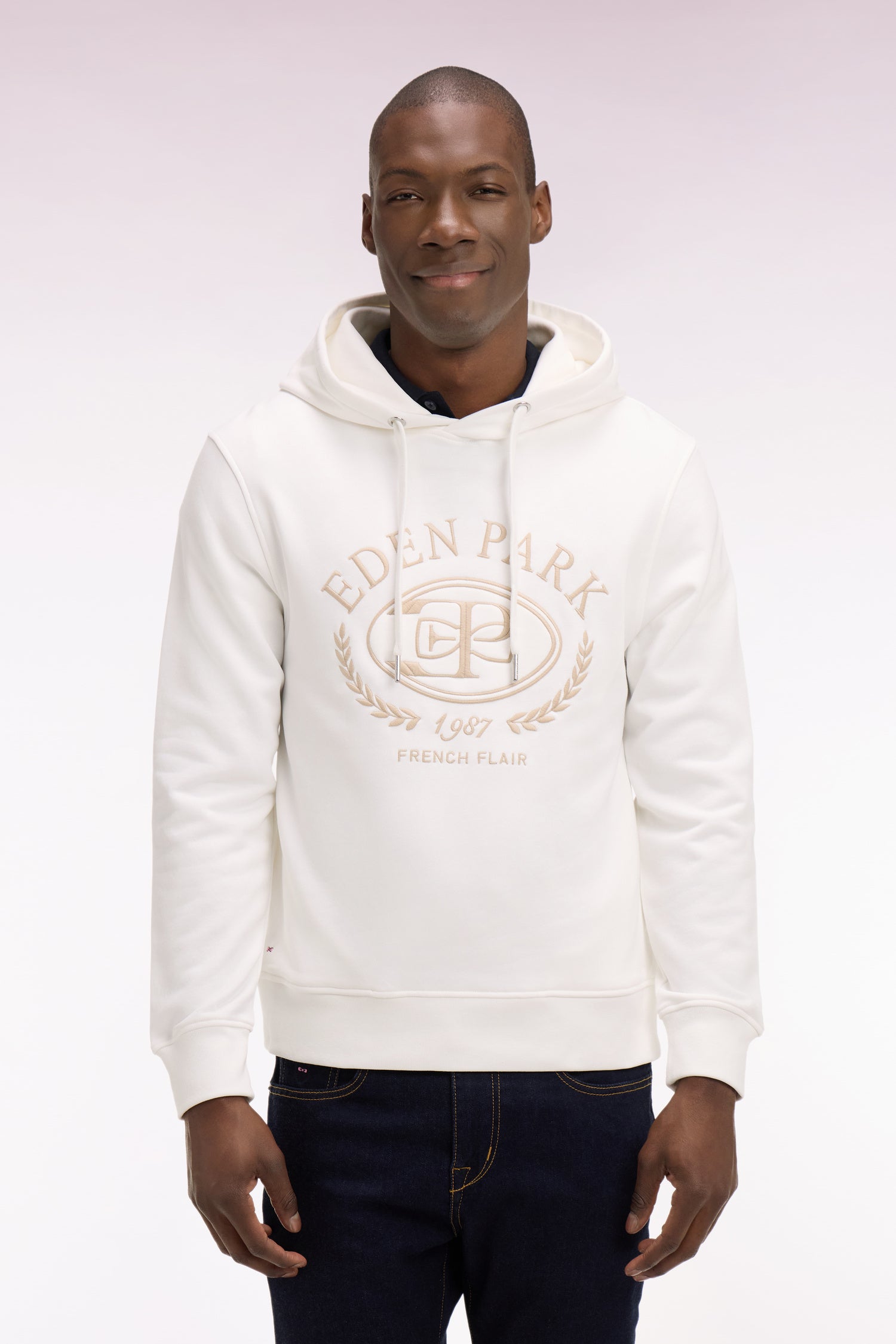 For the spring summer season, our French House had fun imagining a men's collection with vintage accents and very sporty-chic Ivy League inspirations. In pink or ecru, this soft hooded sweatshirt brings elegance and lightness to the men's wardrobe. This refined model, without a pocket to make room for its careful embroidery, asserts its retro style at the heart of the trend. I Thread embroidery