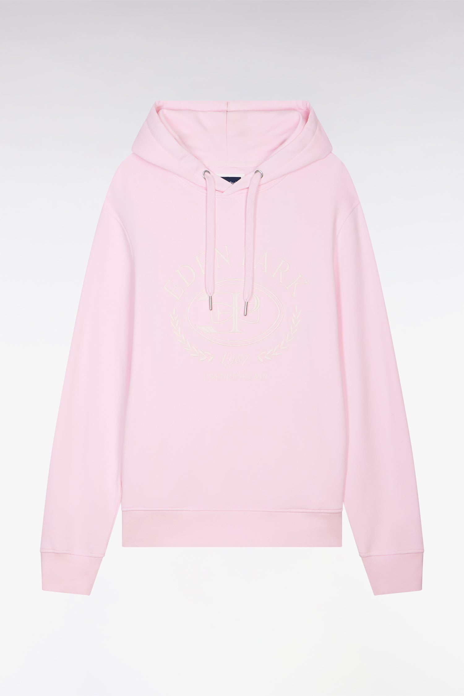 For the spring summer season, our French House had fun imagining a men's collection with vintage accents and very sporty-chic Ivy League inspirations. In pink or ecru, this soft hooded sweatshirt brings elegance and lightness to the men's wardrobe. This refined model, without a pocket to make room for its careful embroidery, asserts its retro style at the heart of the trend. I Thread embroidery