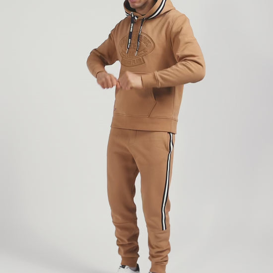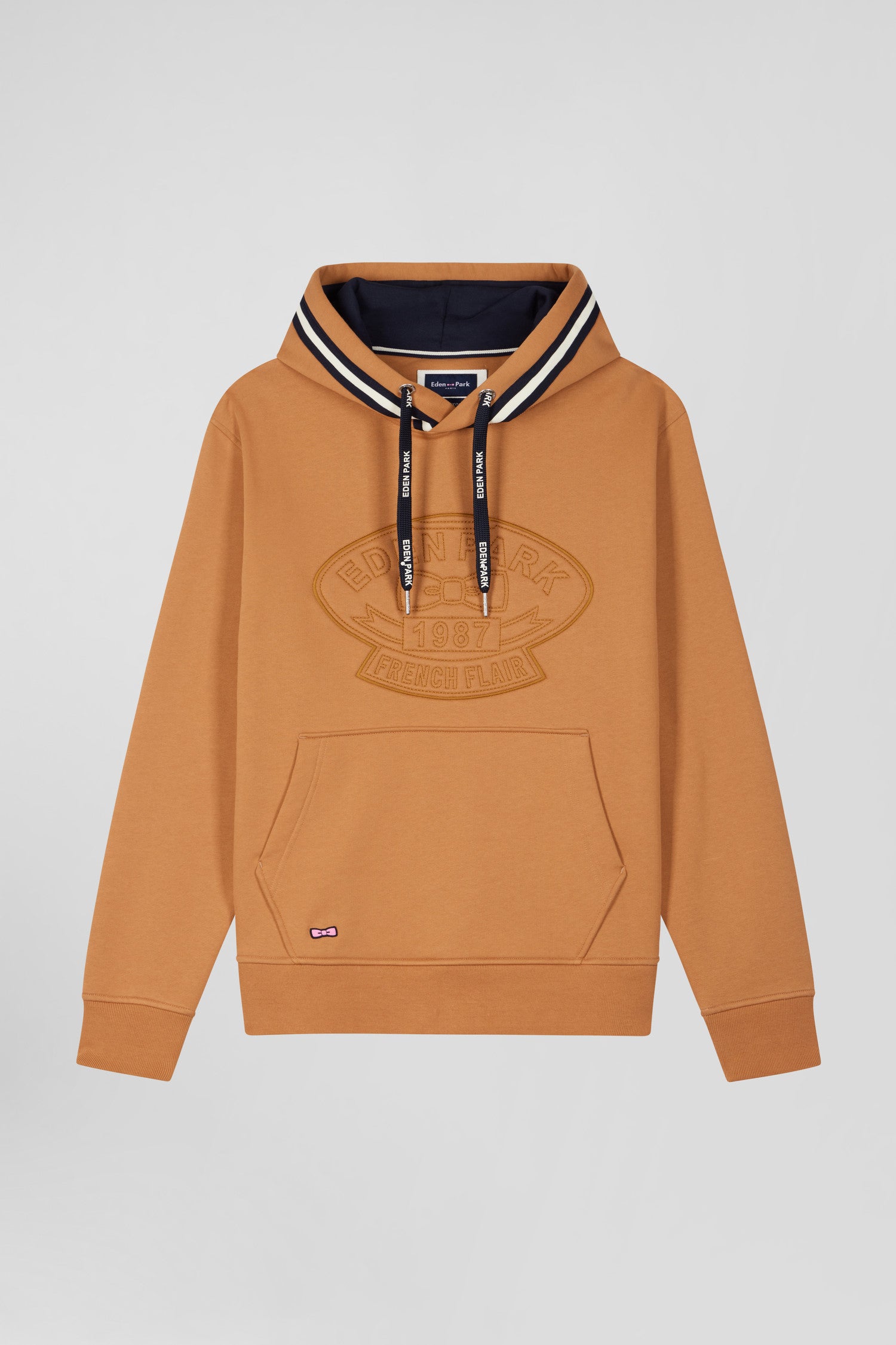 Invite softness and style into your autumn-winter wardrobe with this hooded sweatshirt in brushed fleece. It features quilted embroidery on the front and a practical kangaroo pocket. A knitted ribbon in navy and pink elegantly accentuates the hood, while the signature drawstrings with metallic finishings add a touch of distinction. Three-tone lining stripes reflect our meticulous craftsmanship, for high-end comfort and a sporty-chic look.
