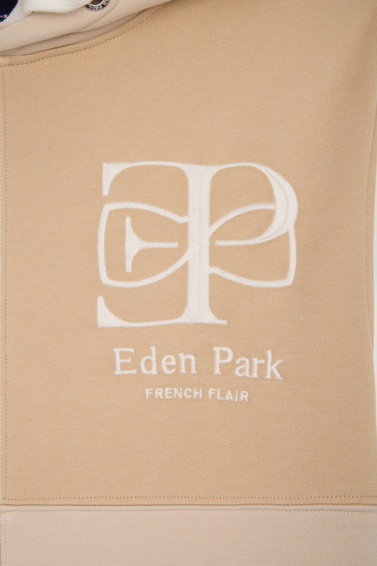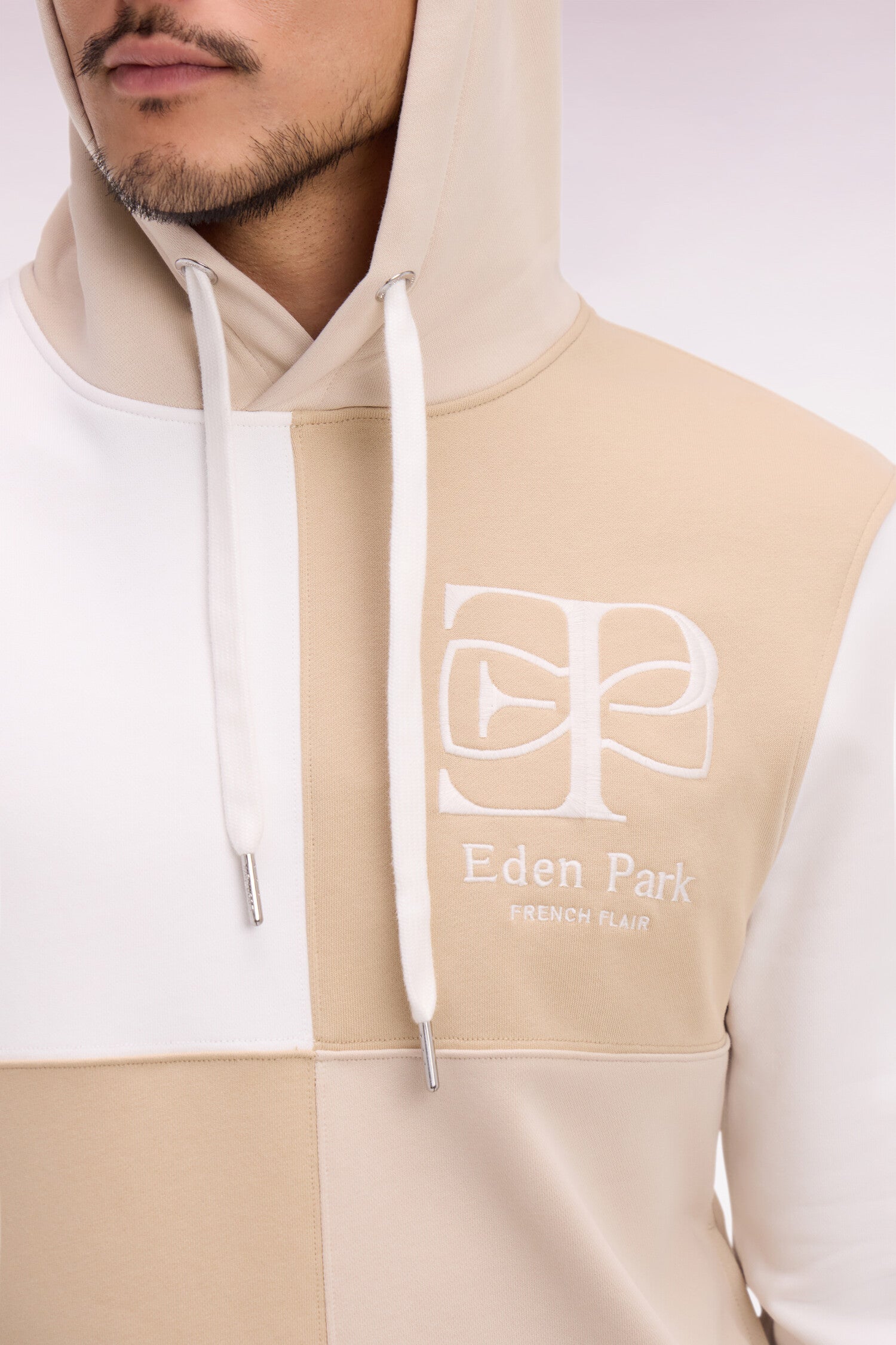 Sweatshirt à capuche en molleton beige colorblock cadrans coupe regular