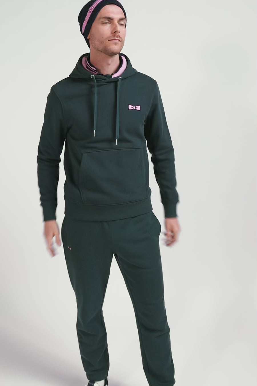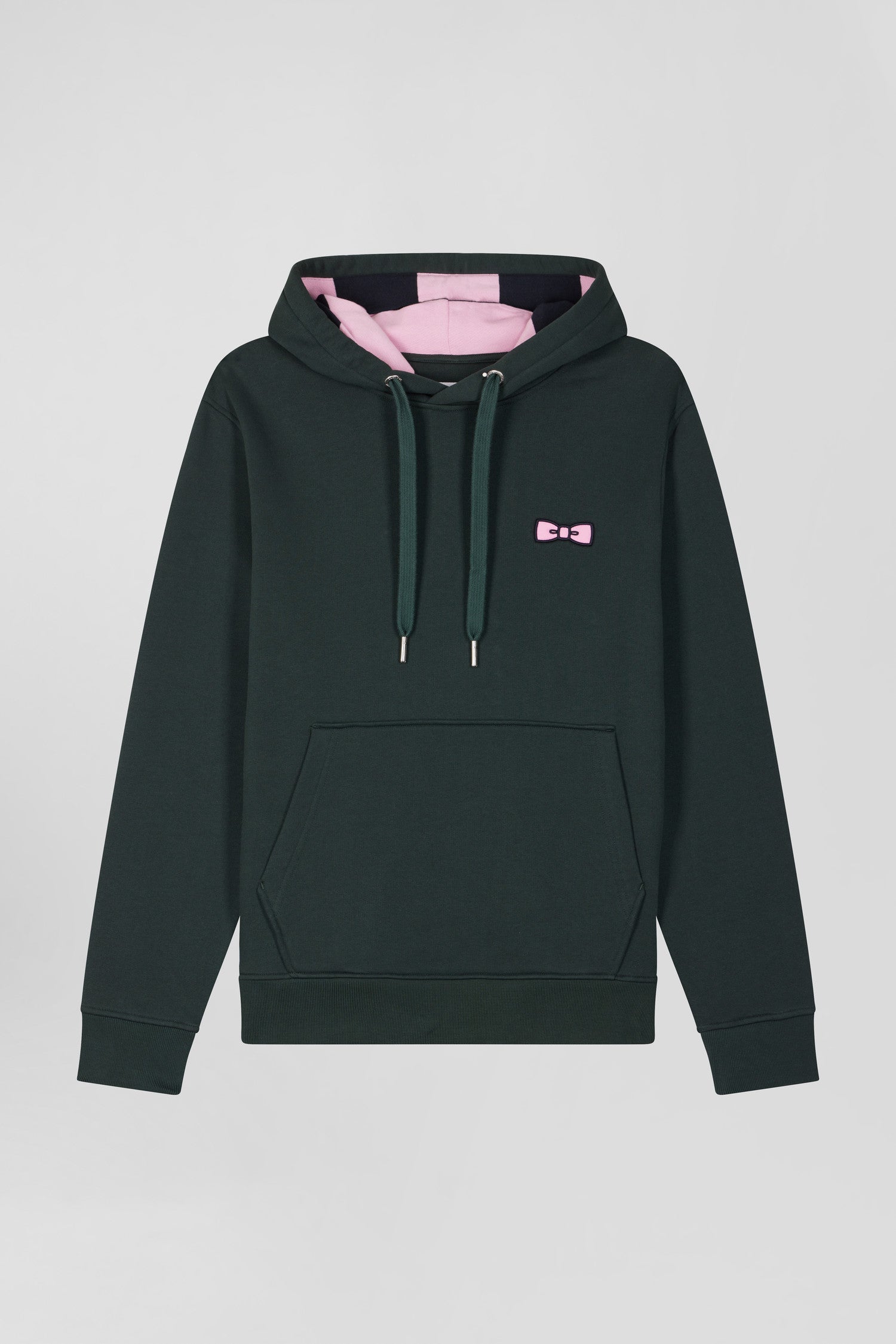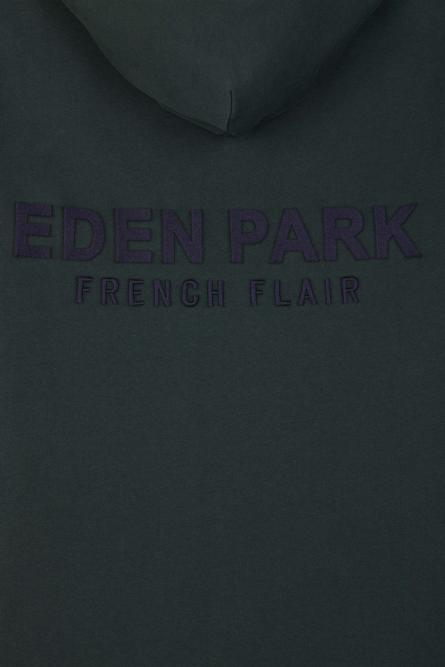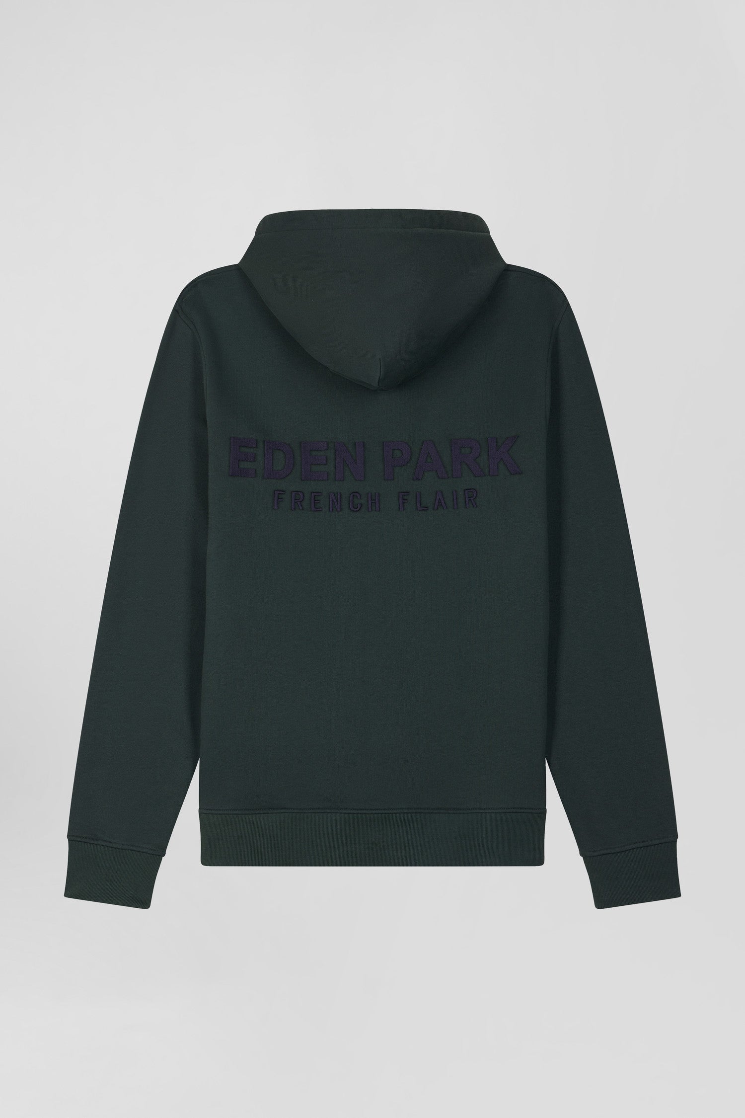 Regular green brushed cotton fleece hoodie with Eden Park embroidery