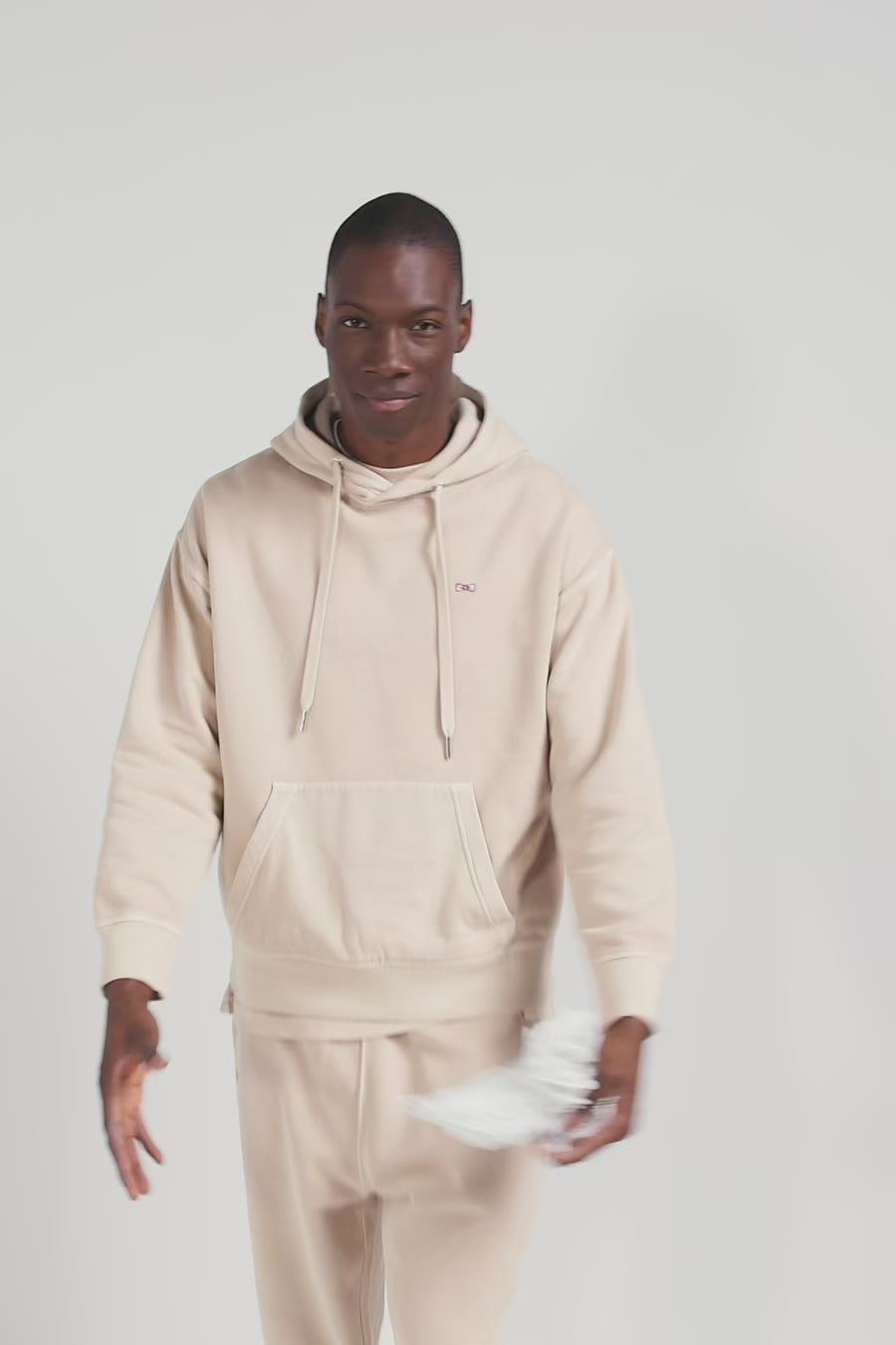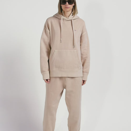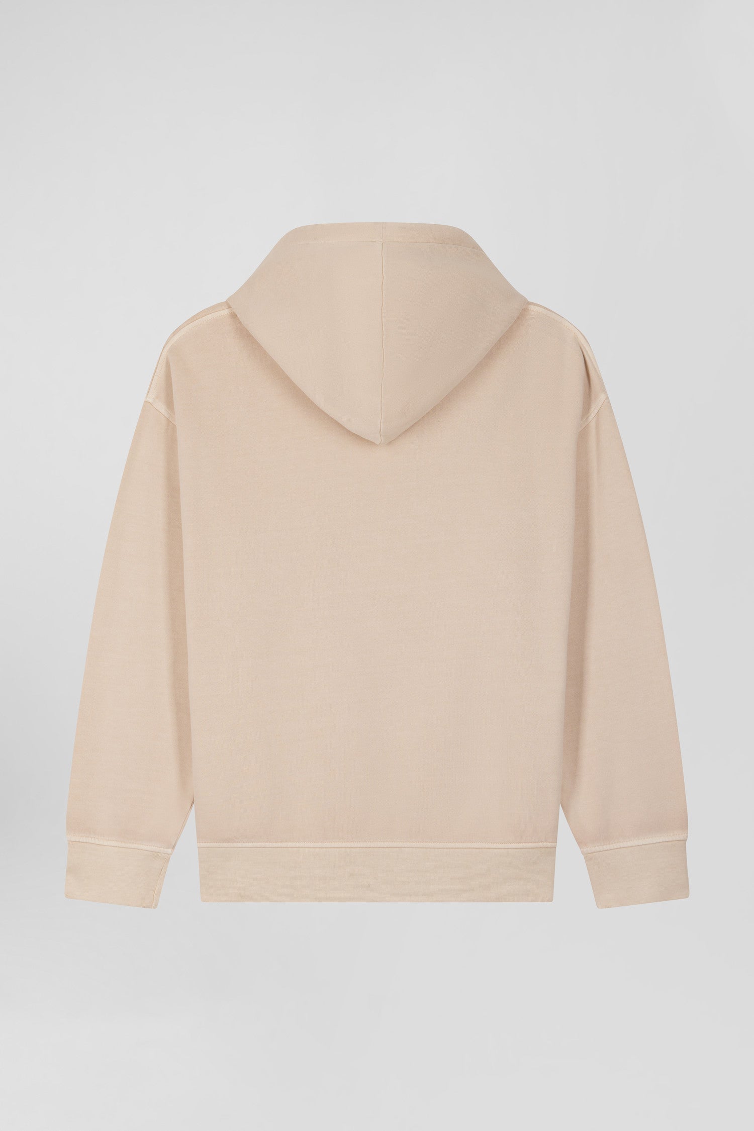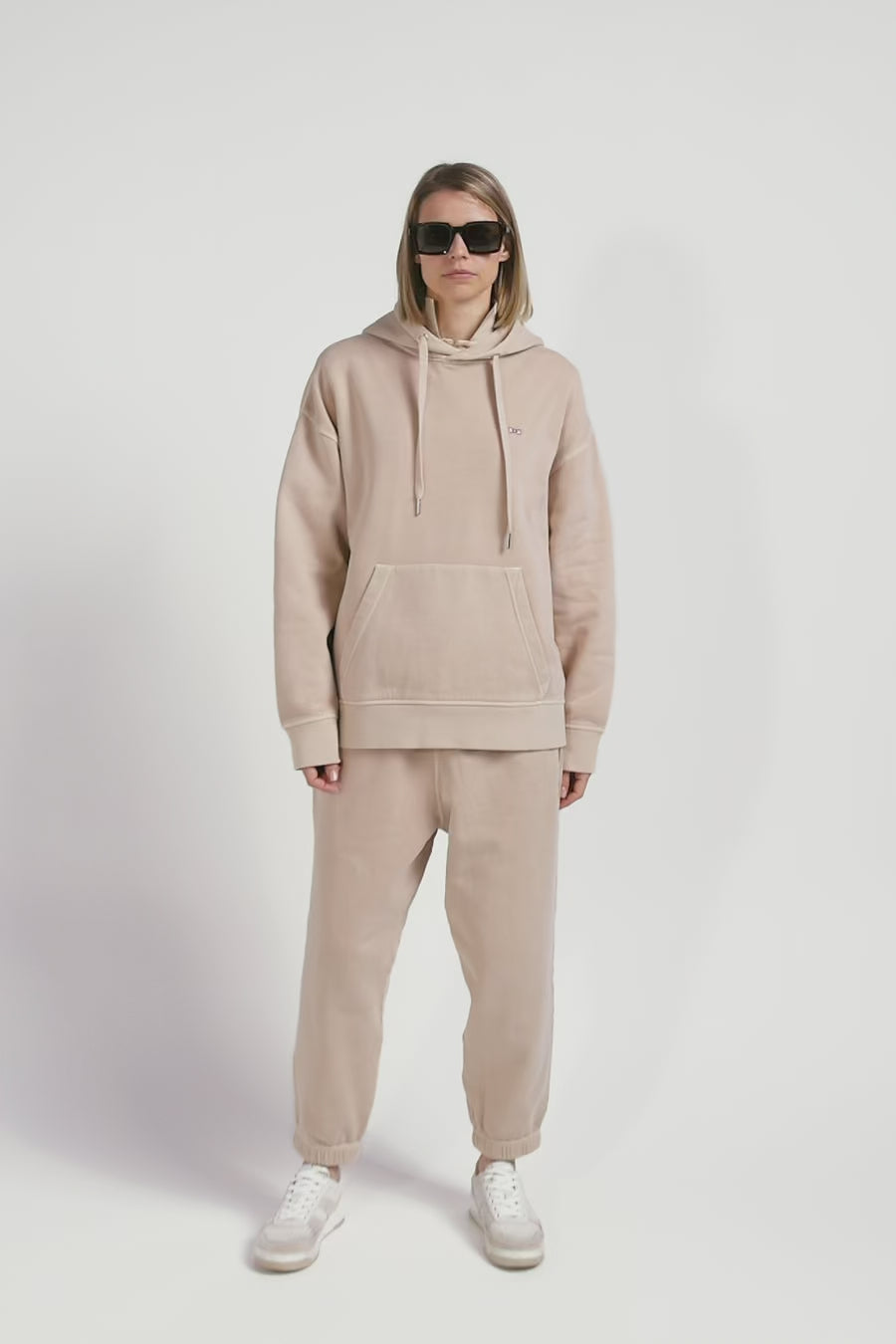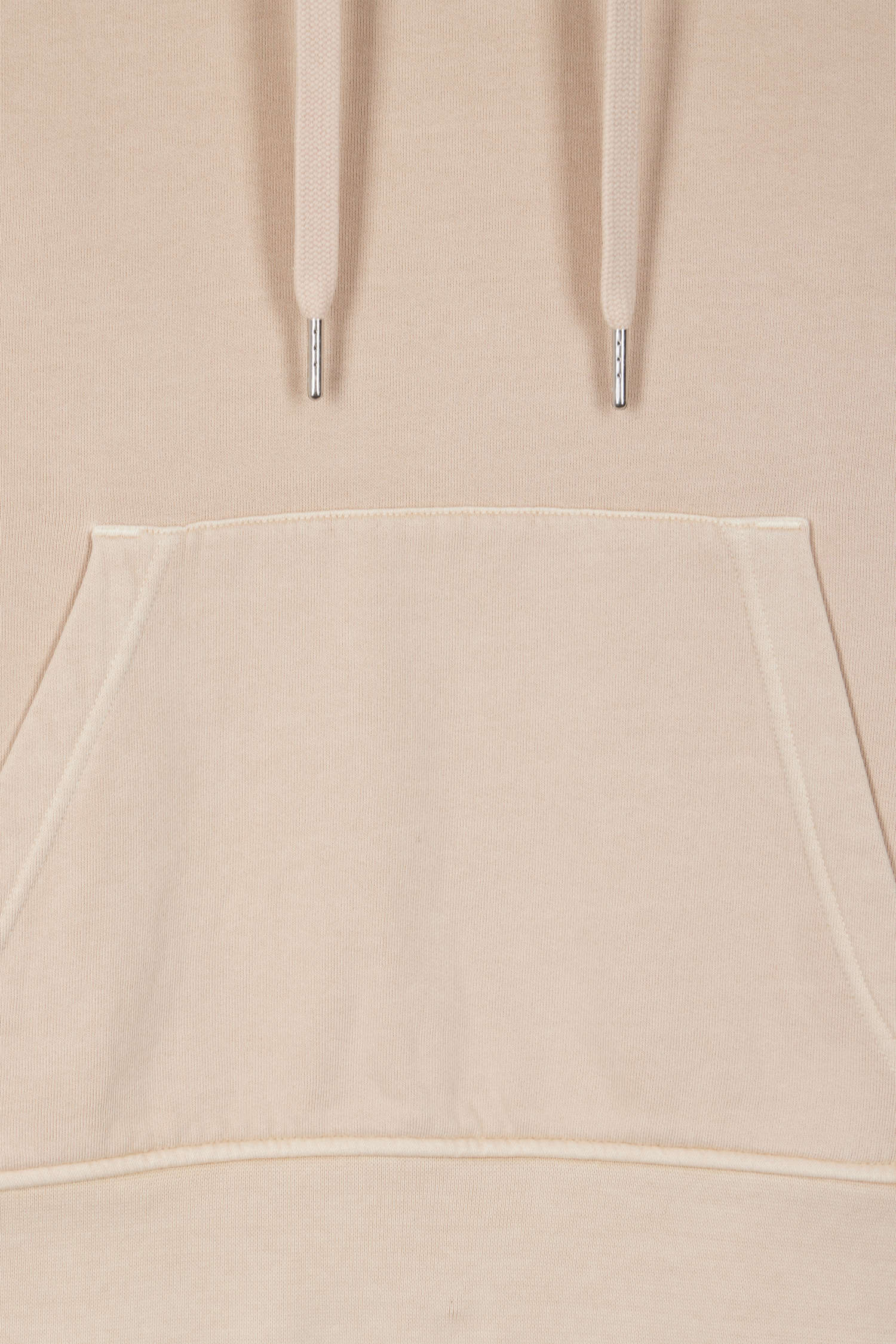 Purity and comfort perfectly define this hooded sweatshirt in overdyed cotton fleece for a more vintage washed effect. This everyday essential boasts a comfortable, trendy oversized cut that can be worn by both men and women, playing on its size and volume. This unisex sweatshirt is available in a wide range of pastel colors.