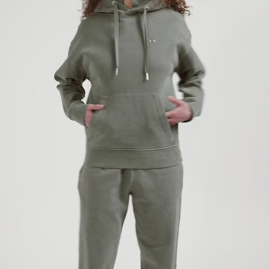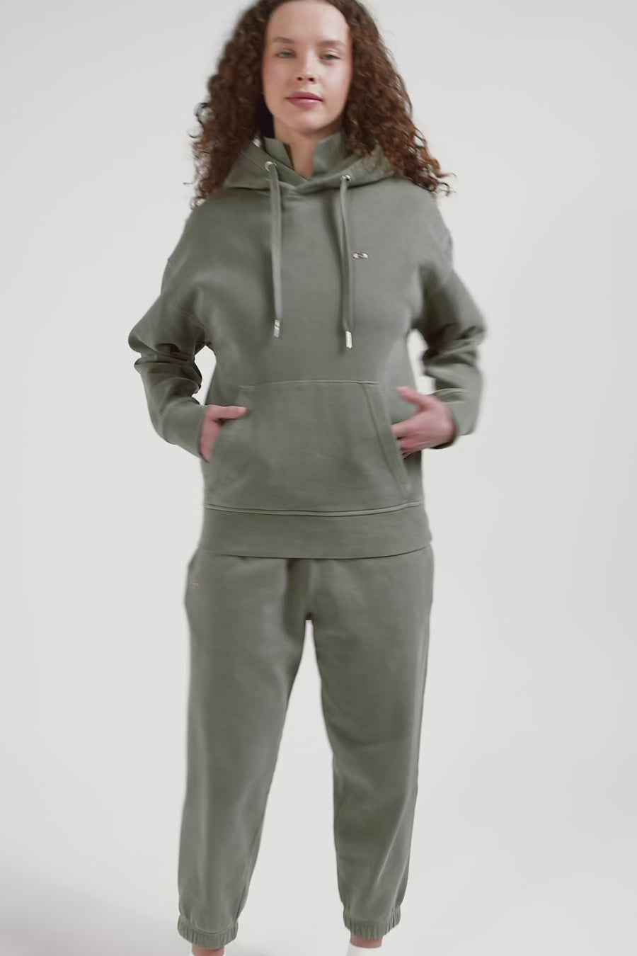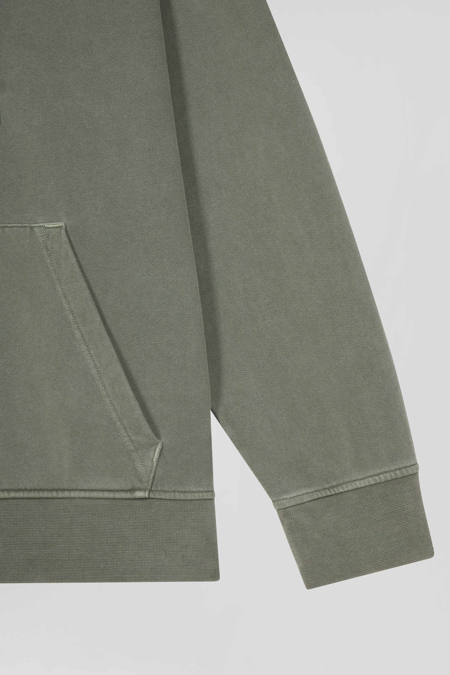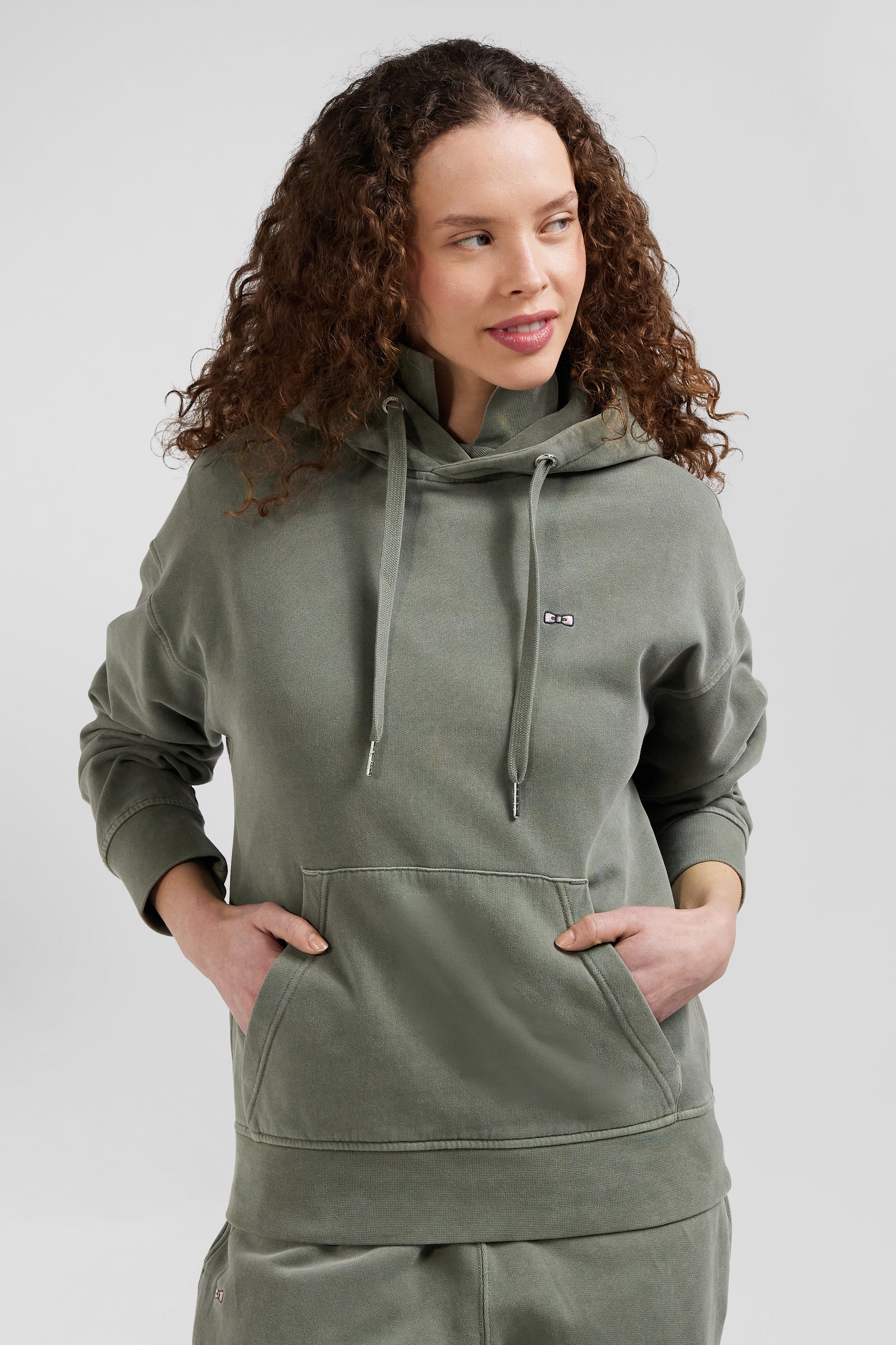 Purity and comfort perfectly define this hooded sweatshirt in overdyed cotton fleece for a more vintage washed effect. This everyday essential boasts a comfortable, trendy oversized cut that can be worn by both men and women, playing on its size and volume. This unisex sweatshirt is available in a wide range of pastel colors.