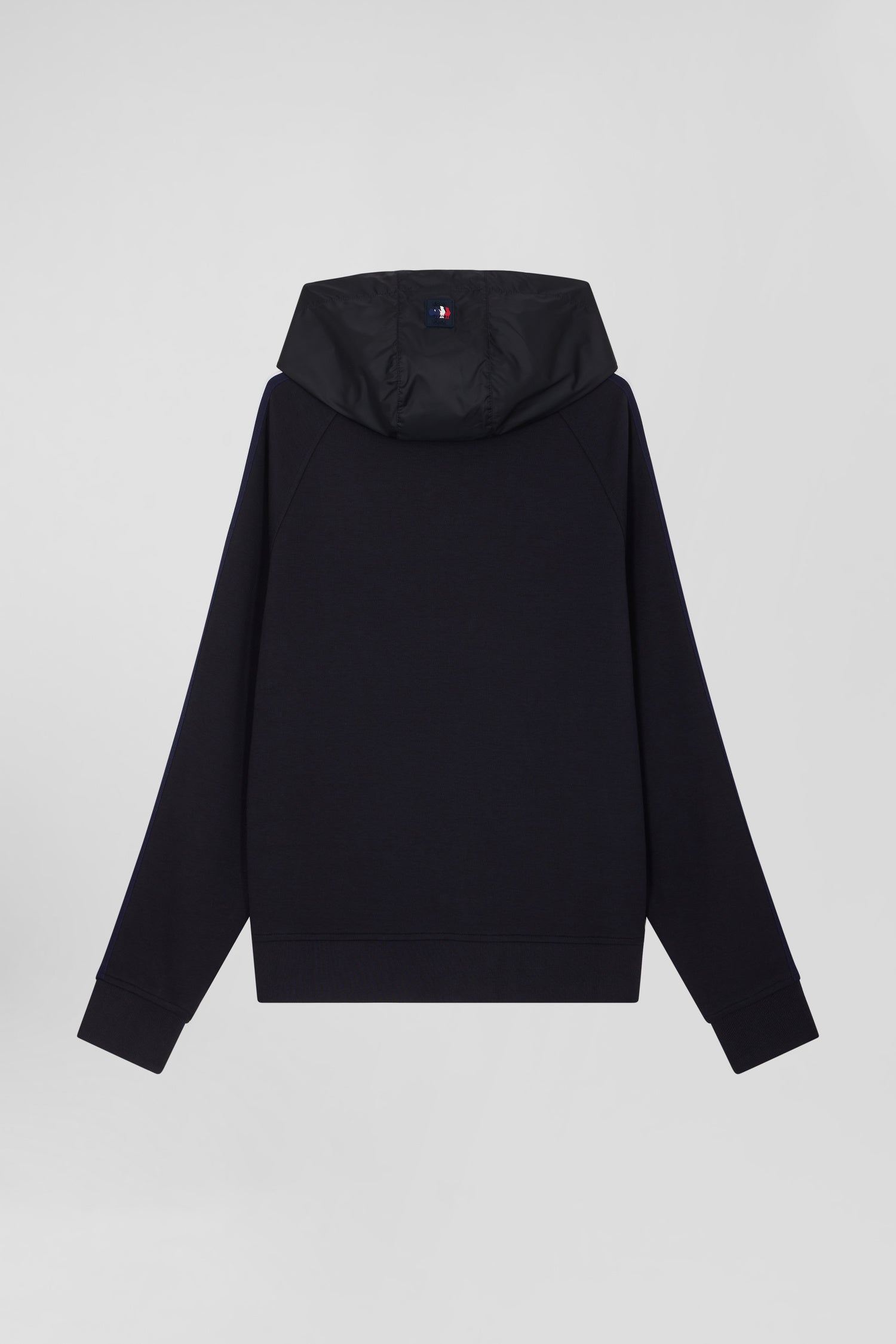 Embrace team spirit with this zip-up hoodie in the colors of Eden Park and the XV de France. In navy blue and gray, it's enhanced by our signature pink details. The inside of the hood features tricolor stripes, while fine embroidery and rubber badges sign off the look with sporty elegance.