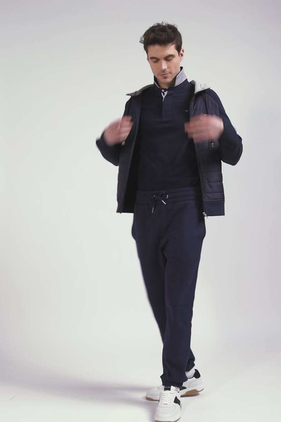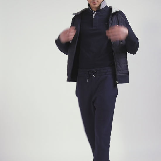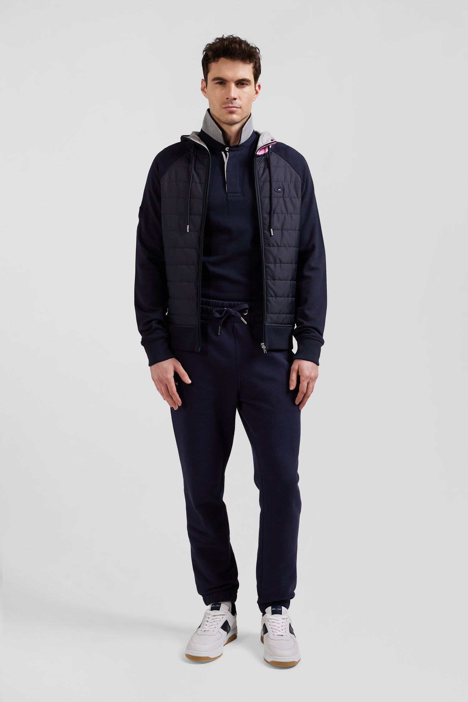 Adopt a versatile outfit with this hybrid model, half sweatshirt, half mid-season jacket. Its timeless color is combined with quilted trims reminiscent of a light down jacket, perfect for the arrival of autumn. The hood, adorned with tricolor stripes, echoes Eden Park's take on French elegance, while the XV de France badge is a proud reminder of our House's passion for rugby. Ideal for a sporty look or a casual outing, this hoodie is the epitome of athletic chic.