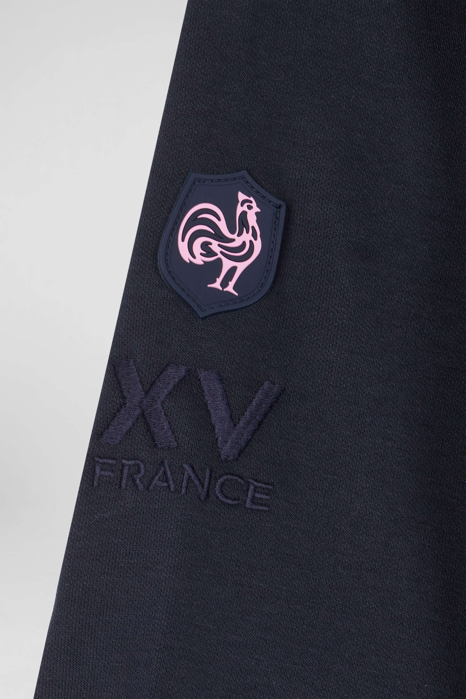 XV de France zipped hooded sweatshirt in cotton blend with navy blue trim, regular fit