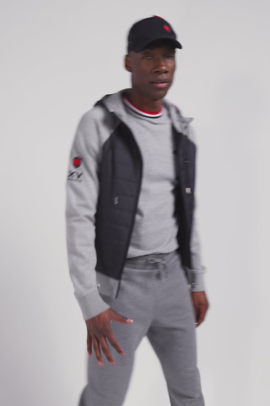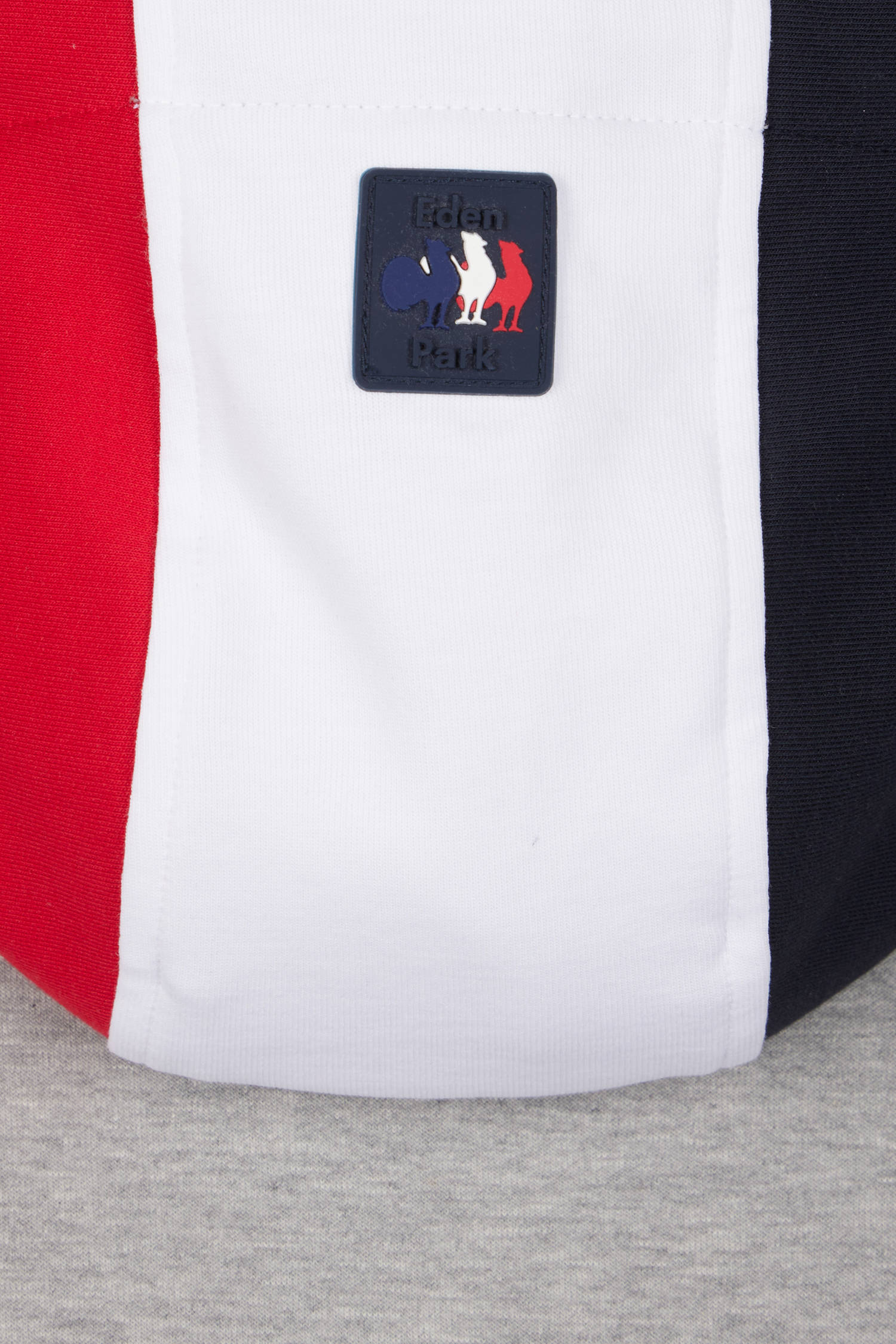 Adopt a versatile outfit with this hybrid model, half sweatshirt, half mid-season jacket. Its timeless color is combined with quilted trims reminiscent of a light down jacket, perfect for the arrival of autumn. The hood, adorned with tricolor stripes, echoes Eden Park's take on French elegance, while the XV de France badge is a proud reminder of our House's passion for rugby. Ideal for a sporty look or a casual outing, this hoodie is the epitome of athletic chic.