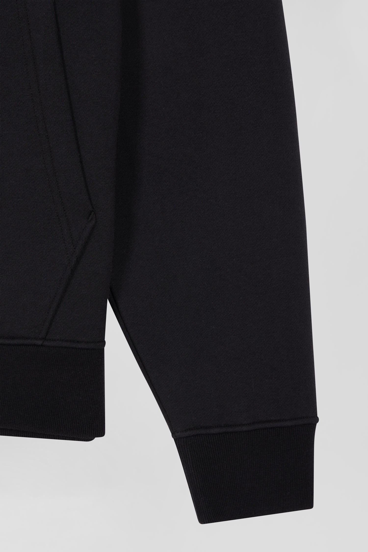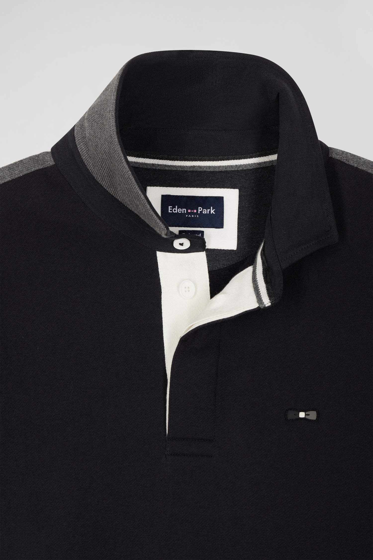 Relaxed black cotton sweatshirt with rugby shirt collar