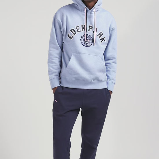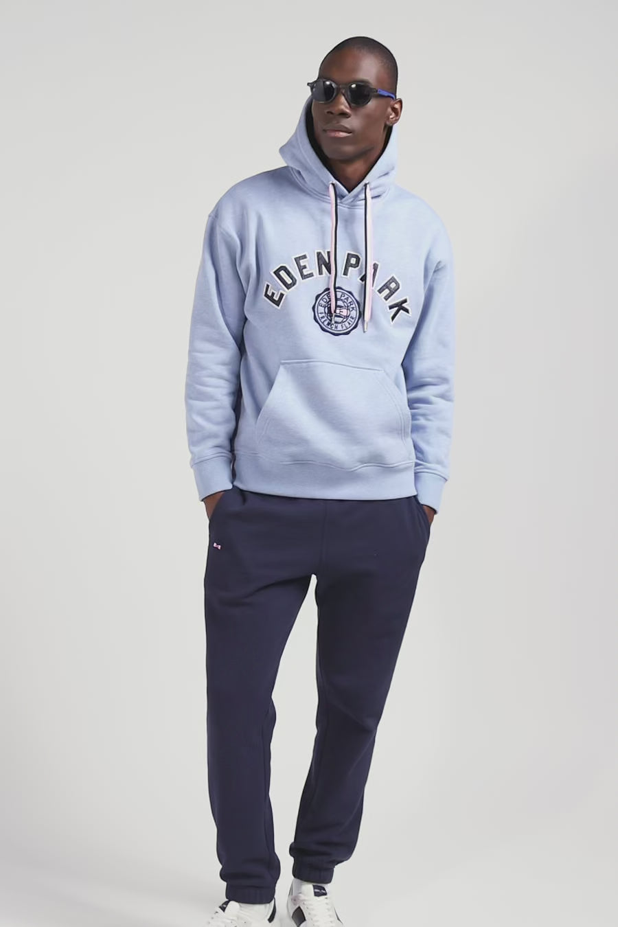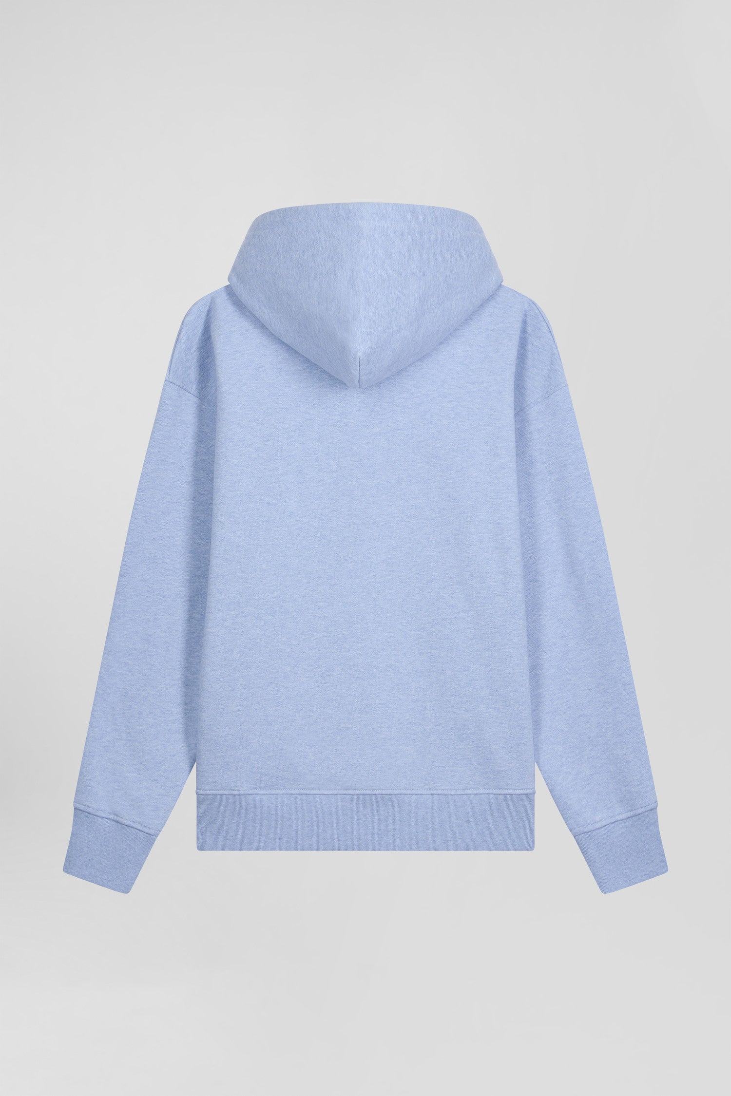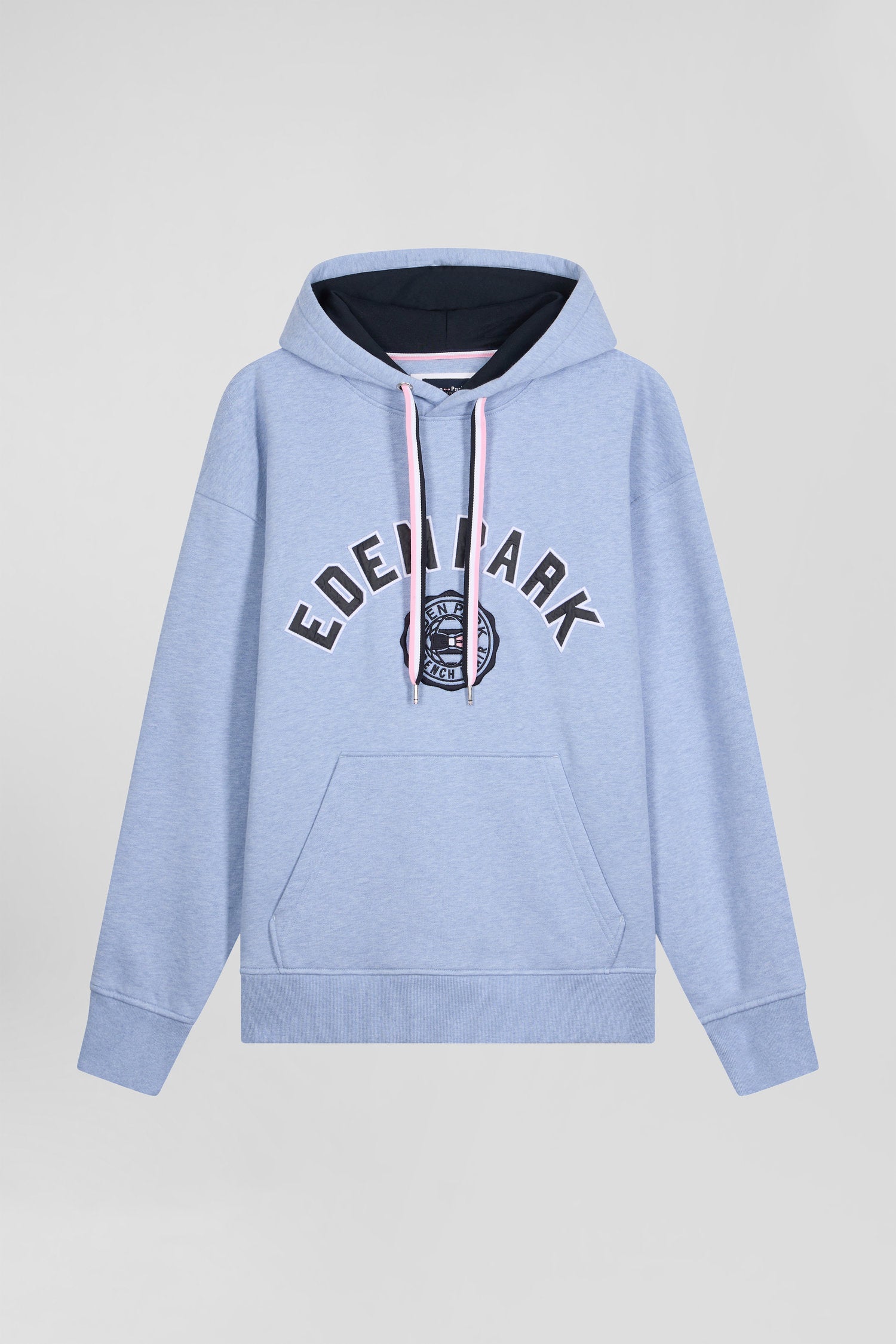 Available in light blue or gray, this men's hoodie is a sporty, polished look. Its loose, oversized cut is both trendy and comfortable, underlining the relaxed spirit of this men's hoodie. Its kangaroo pocket is topped by lettering bearing the name of our House, contrasting with its pink drawstring.