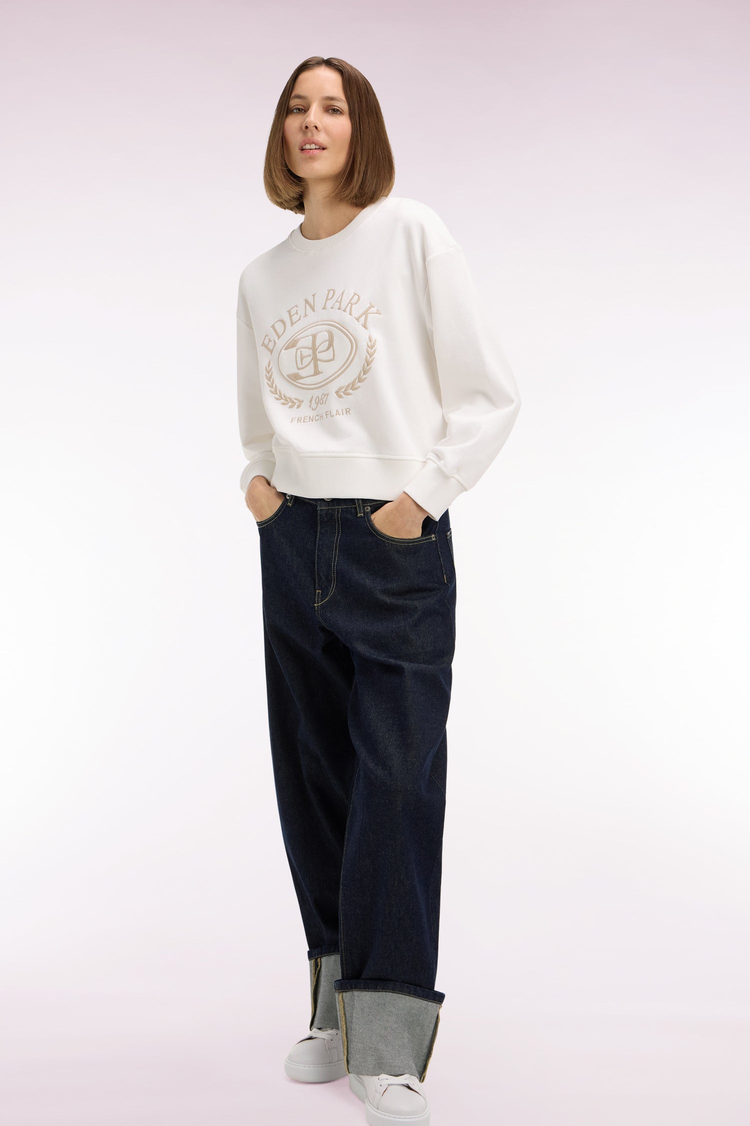 Notre sweatshirt femme à manches longues adopte une coupe relaxed qui mêle confort moderne et allure tendance. Son col rond, souligné de finitions en bords-côtes aux poignets, au col et au bas du corps, structure la silhouette sans la contraindre. Sa broderie frontale aux accents Ivy League rétro signe cette pièce sport-chic dont le style se déploie dans une sélection de polos et de pièces masculines. Facile à associer à un jean ou un pantalon tailleur beige fluide, ce sweatshirt offert en rose ou en écru revisite l’esthétique college dans une version douce, féminine et contemporaine ultra désirable. À porter en semaine comme en week-end pour mettre en valeur votre style.