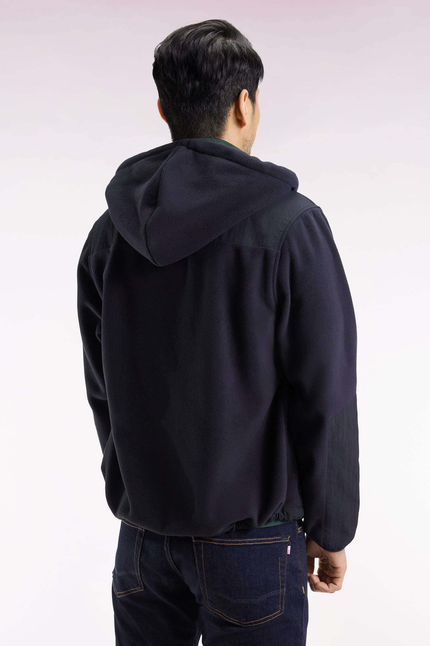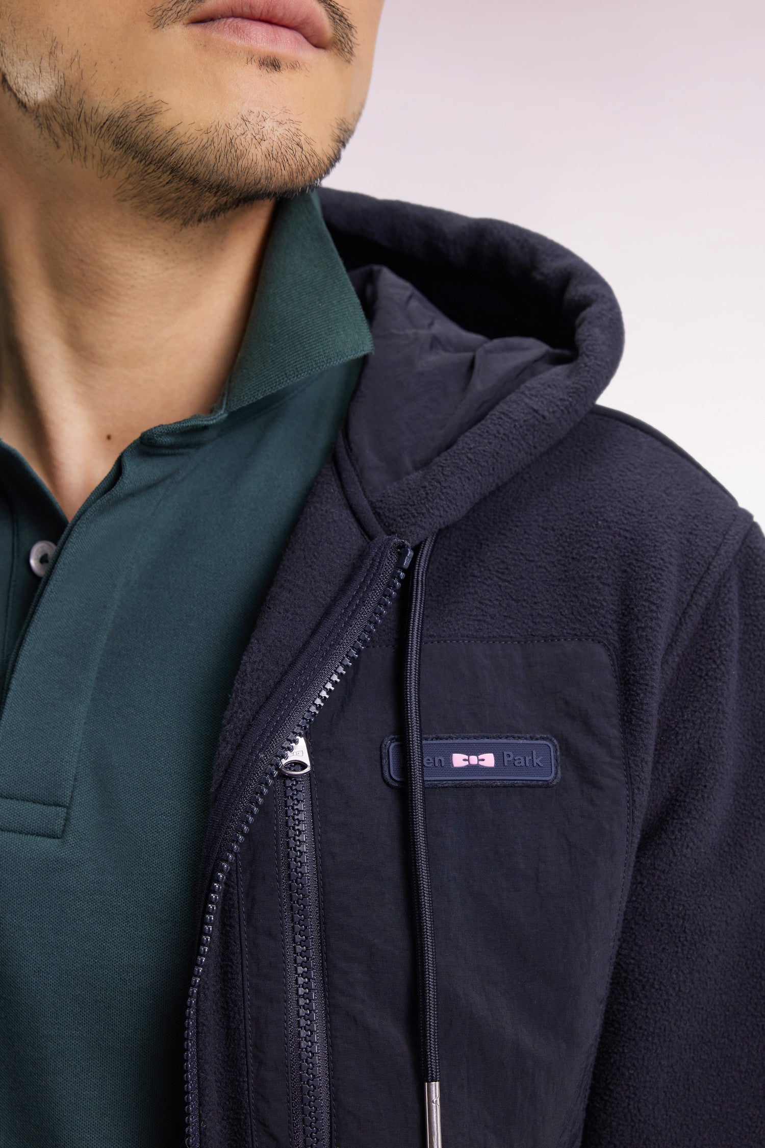 A combination of technical style and contemporary allure, this zipped jacket is a must-have this season. Contrasting nylon inserts underline a graphic silhouette, reinforced by shiny metal zips and a wraparound hood. An audacious model, at the crossroads of jacket and streetwear sweatshirt.