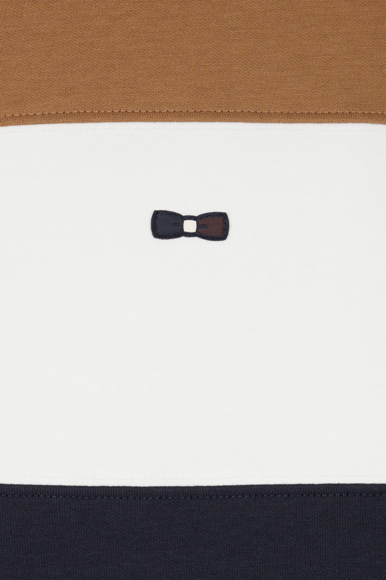 • Embroidered tricolor bowtie emblem