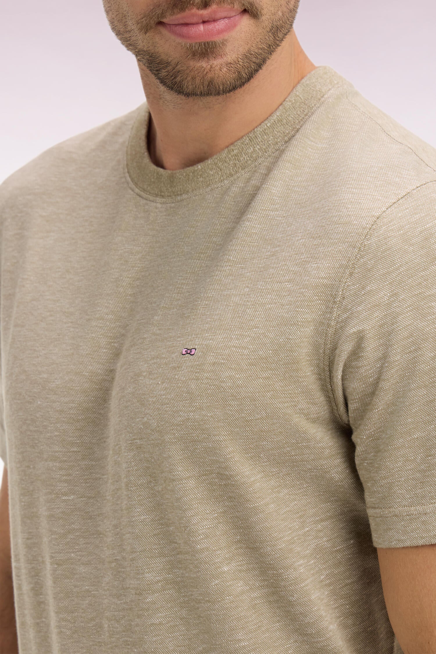T-shirt à manches courtes en coton et lin grège coupe regular