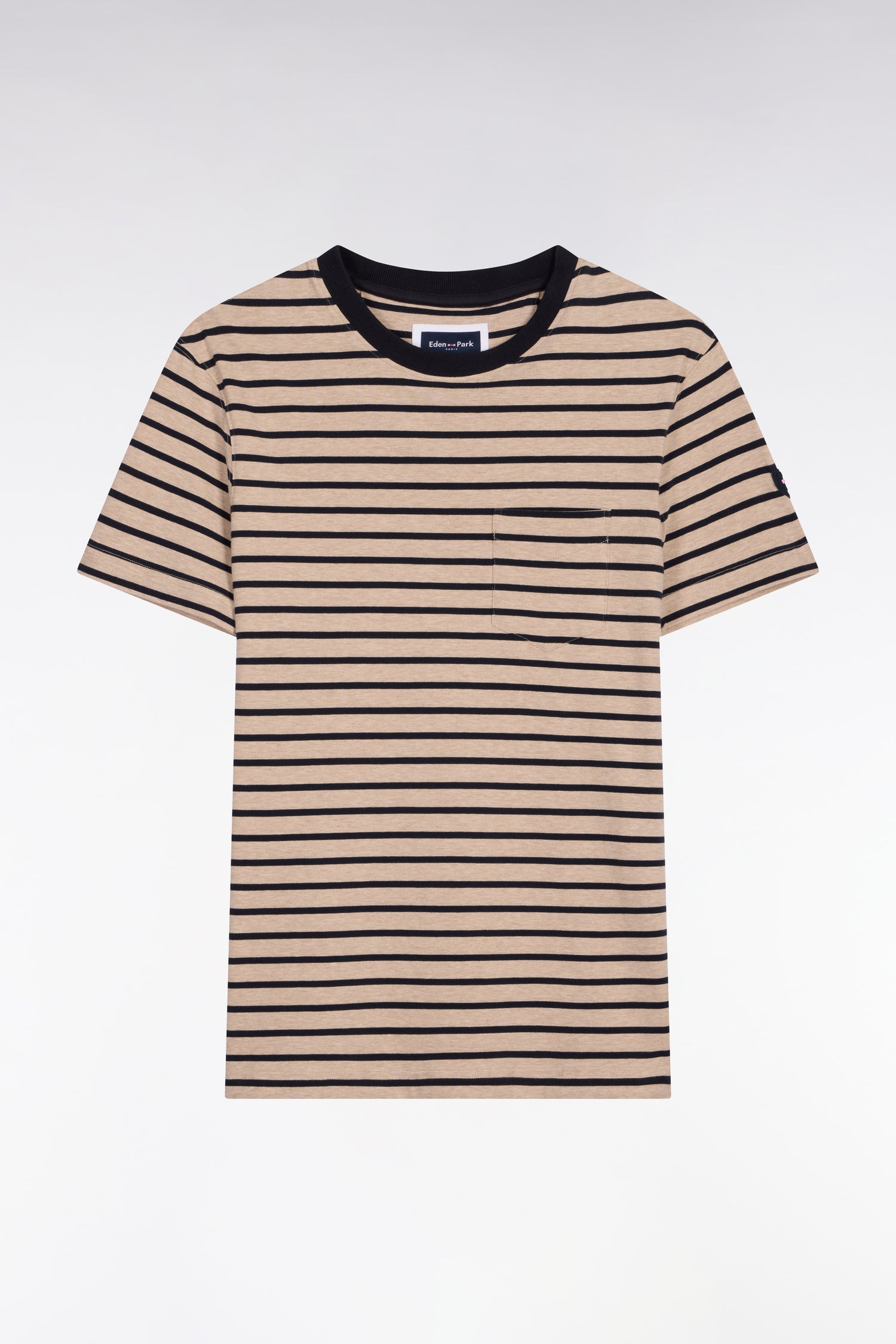 T-shirt à manches courtes en coton stretch rayé beige coupe slim