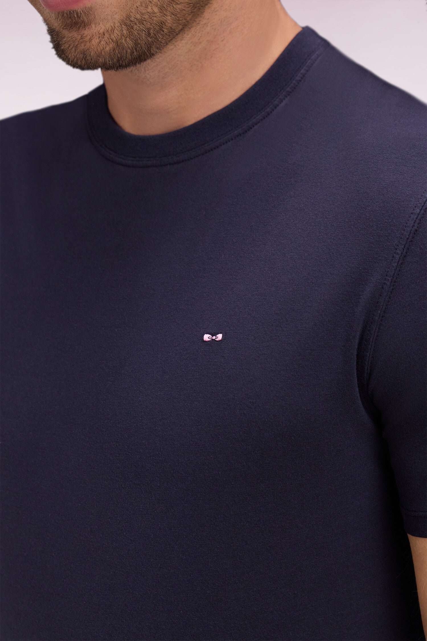 T-shirt à manches courtes en lyocell et coton marine coupe regular