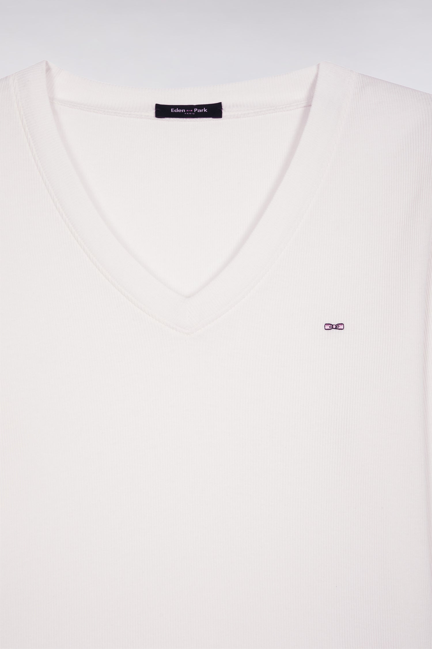 Long-sleeved T-shirt in white ribbed Pima cotton, slim fit
